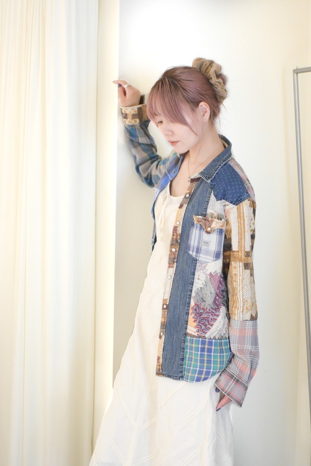70's patch reworked chambray western shirt