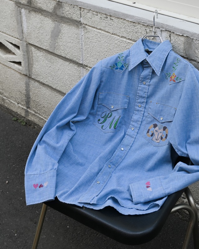 70’s sears hand painted chambray western shirt
