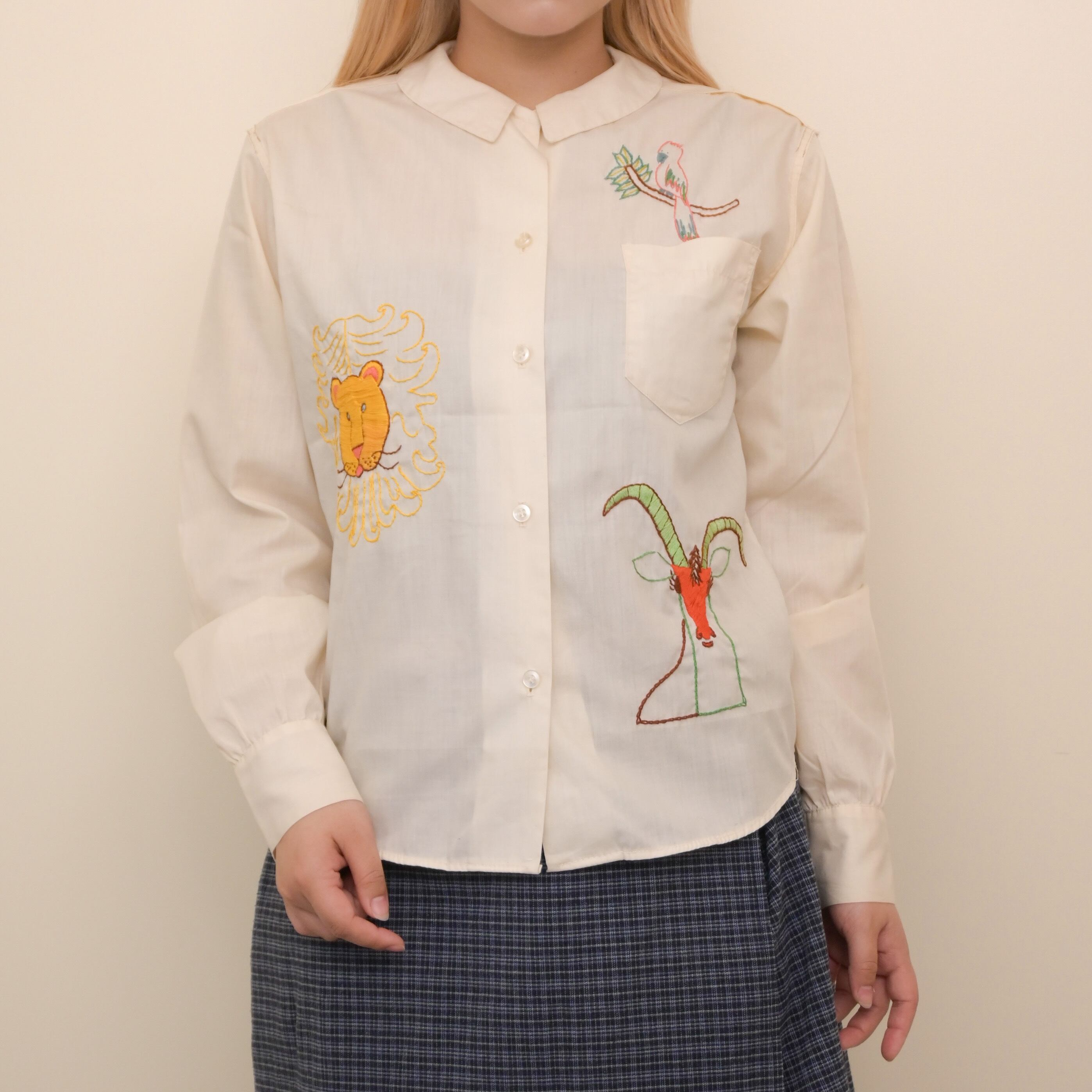 60’s hand embroidered animals blouse