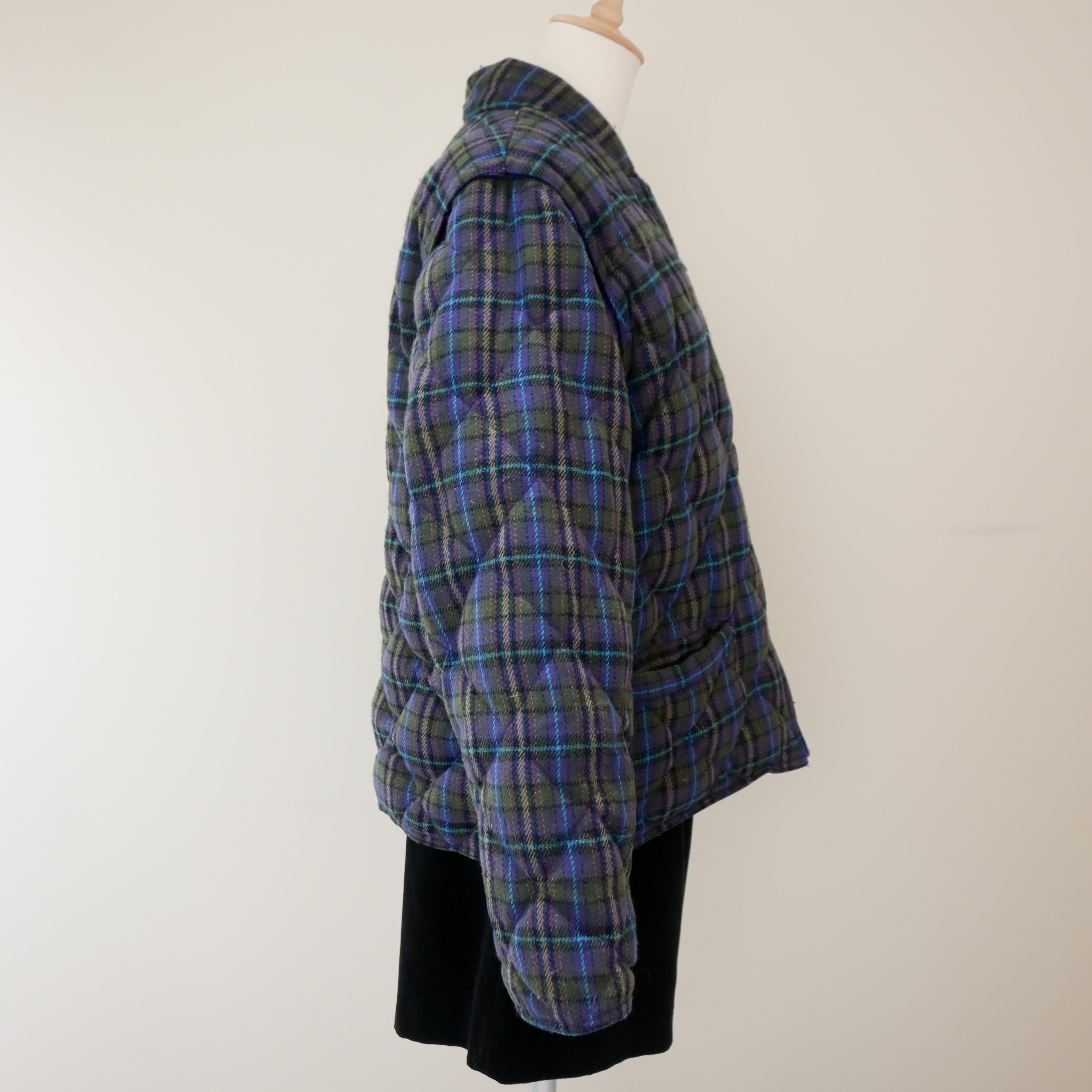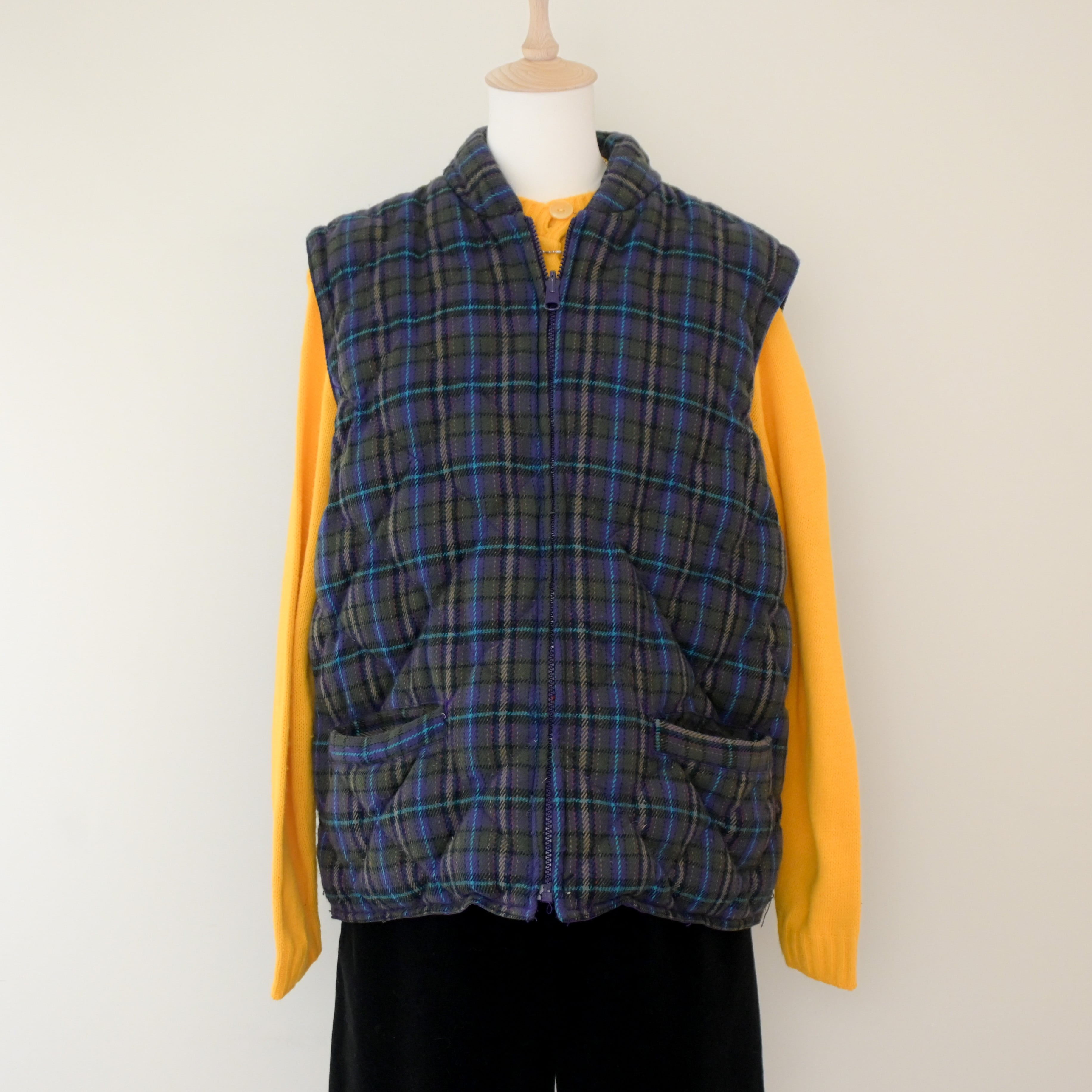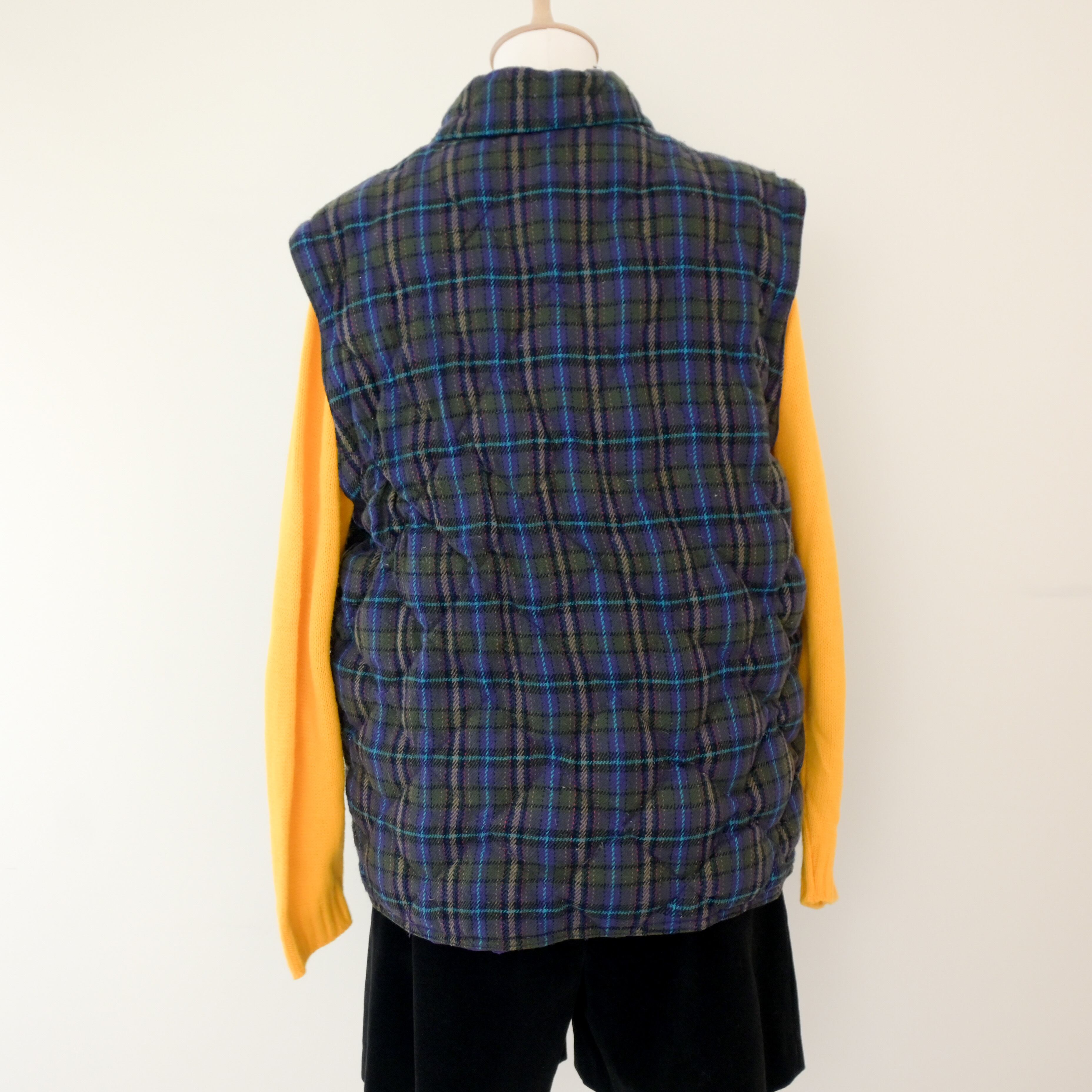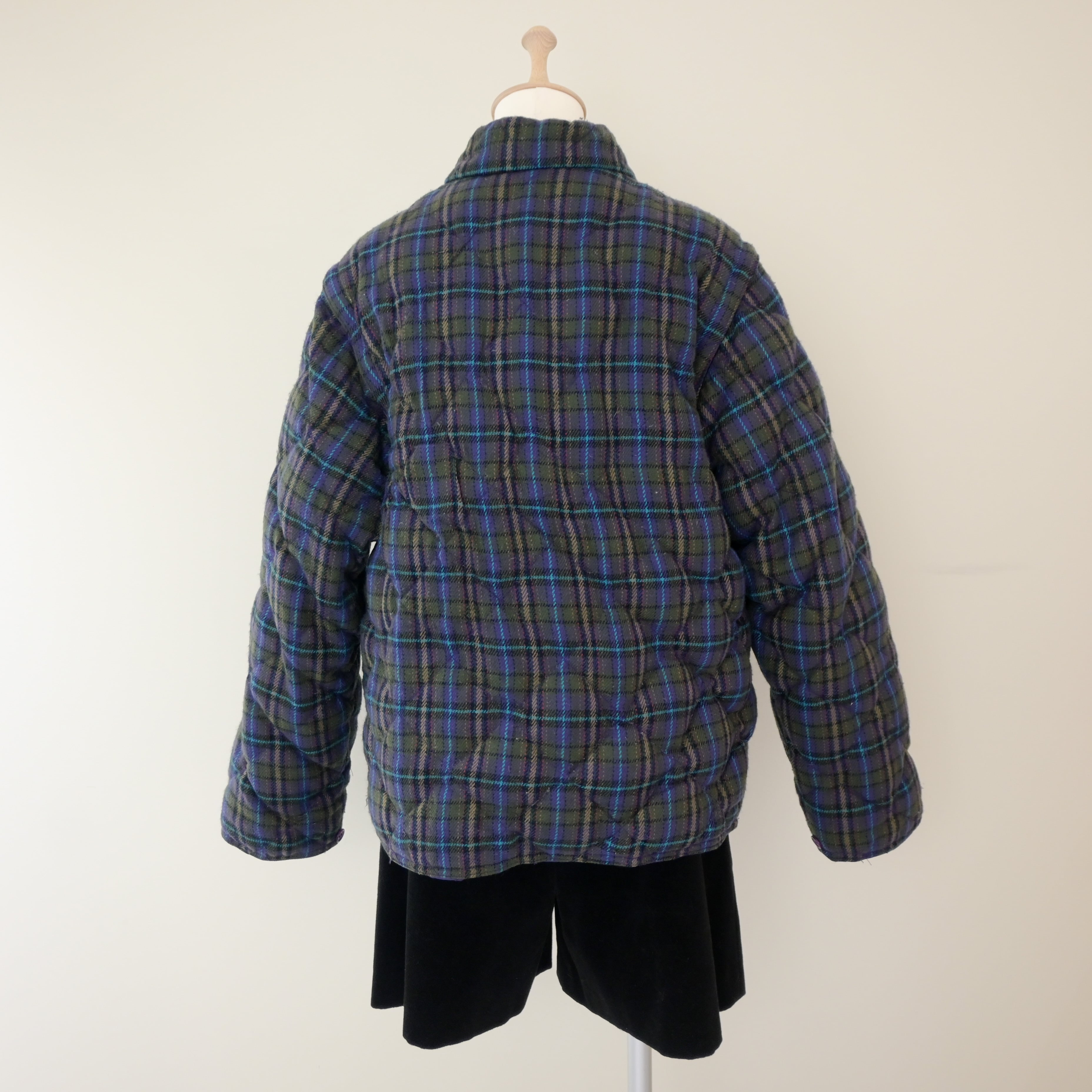 80~90's plaid quilted 2way down jacket