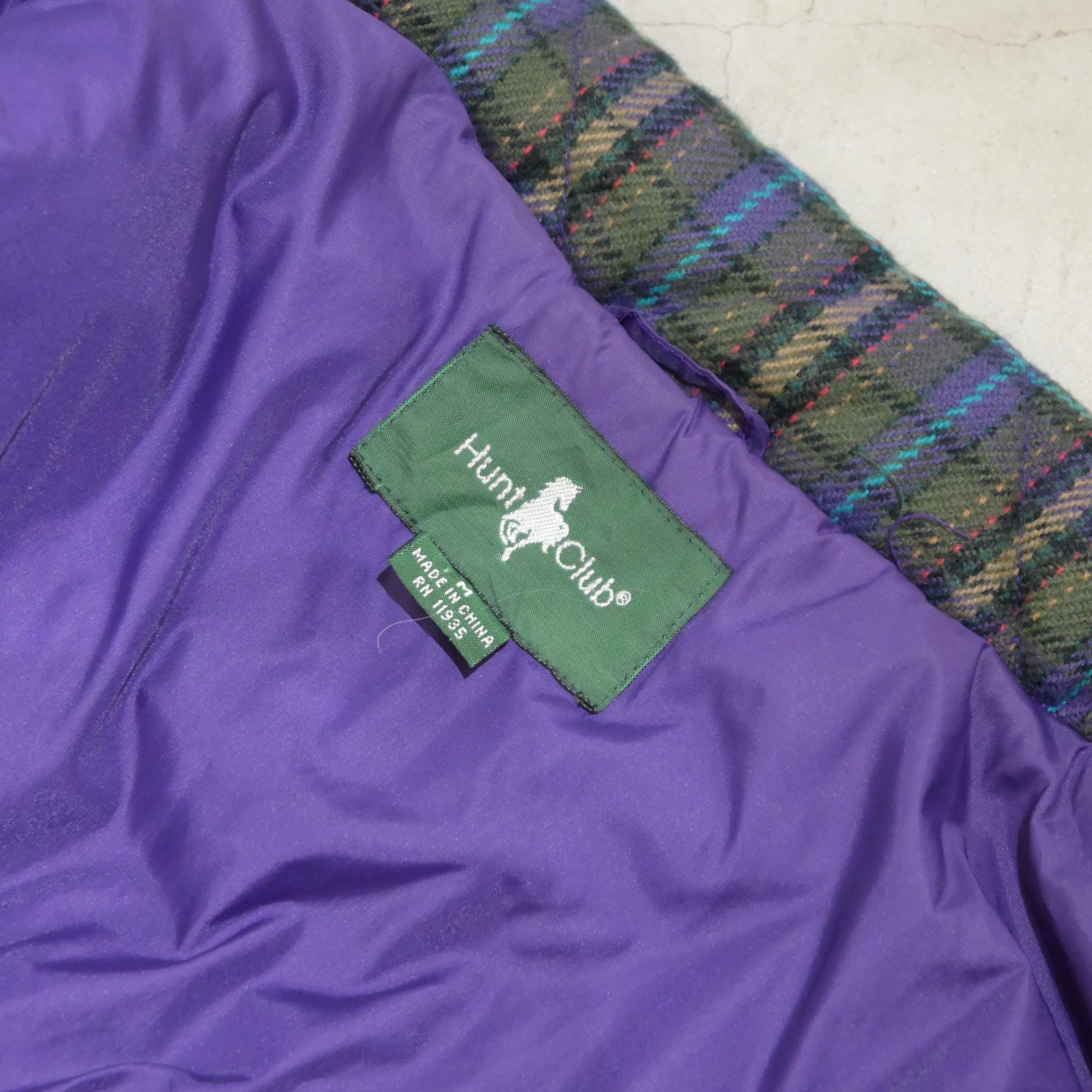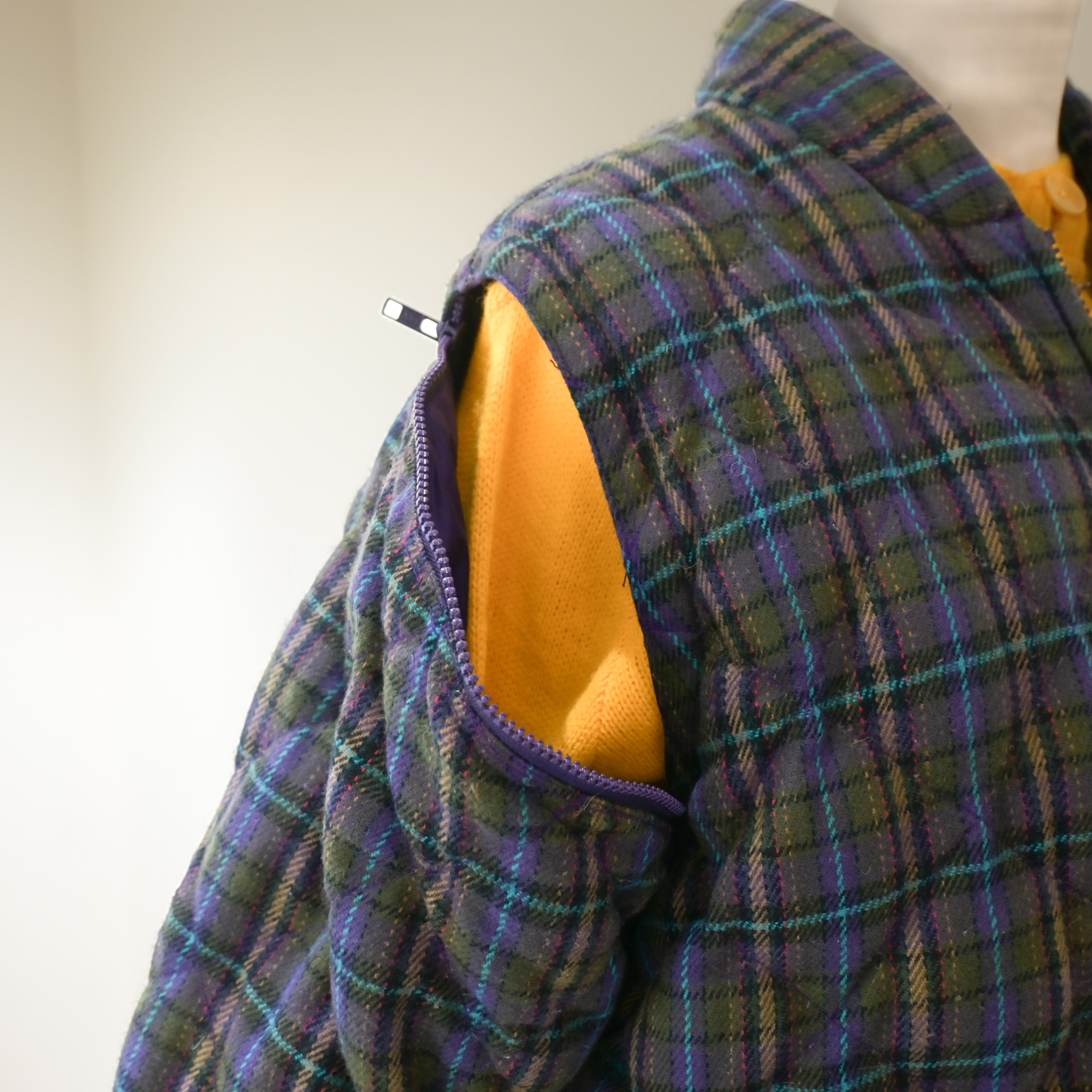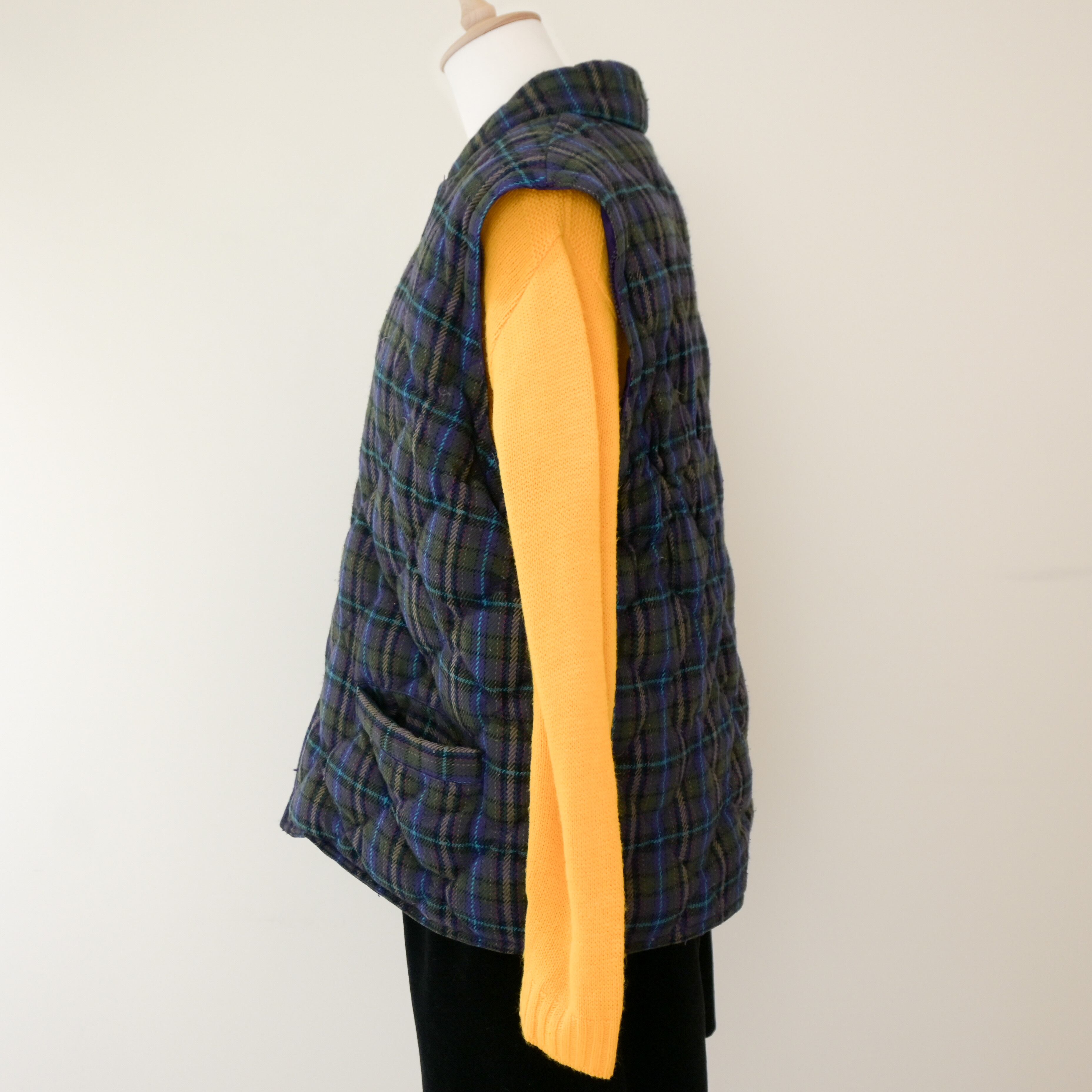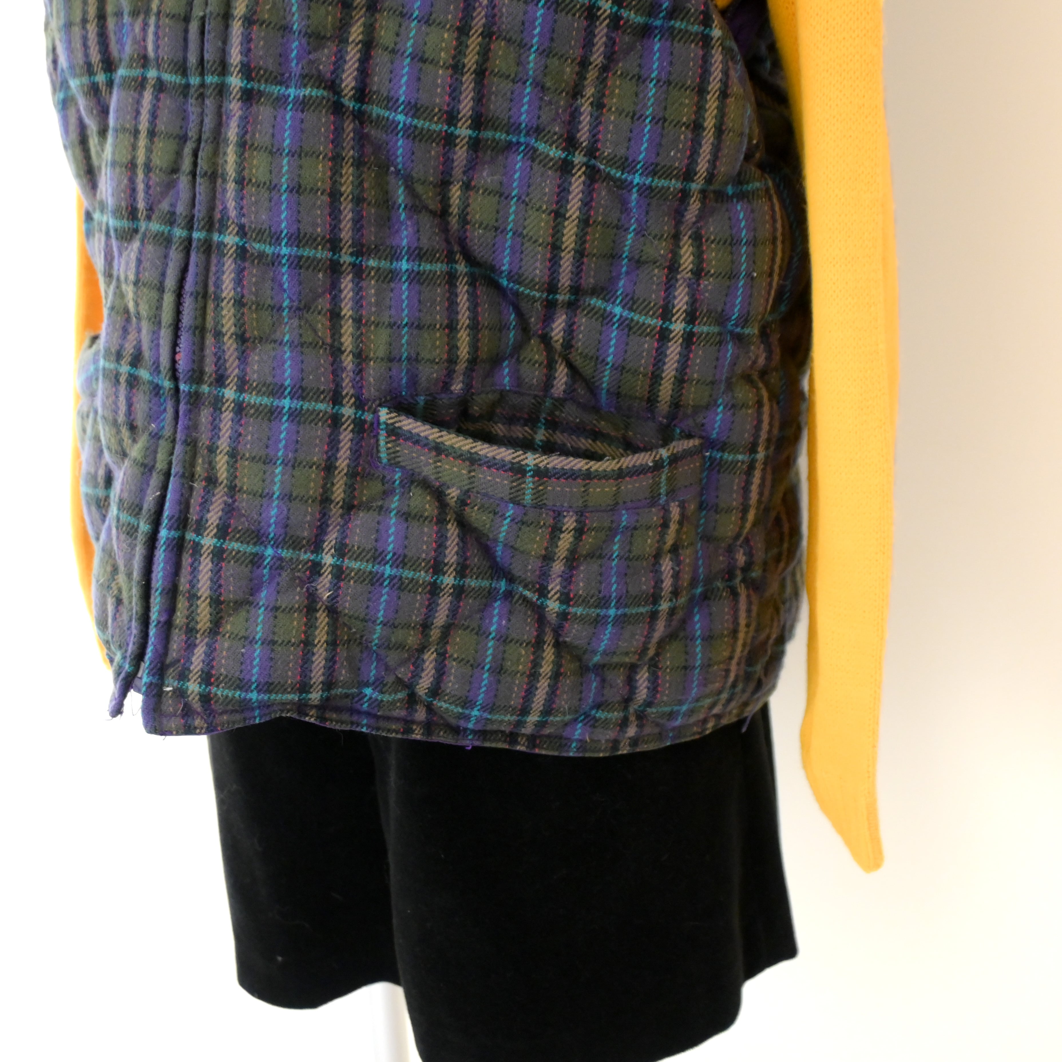 80~90's plaid quilted 2way down jacket
