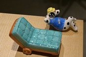 90's relaxing “HOT DOG” on the couch salt and pepper shakers