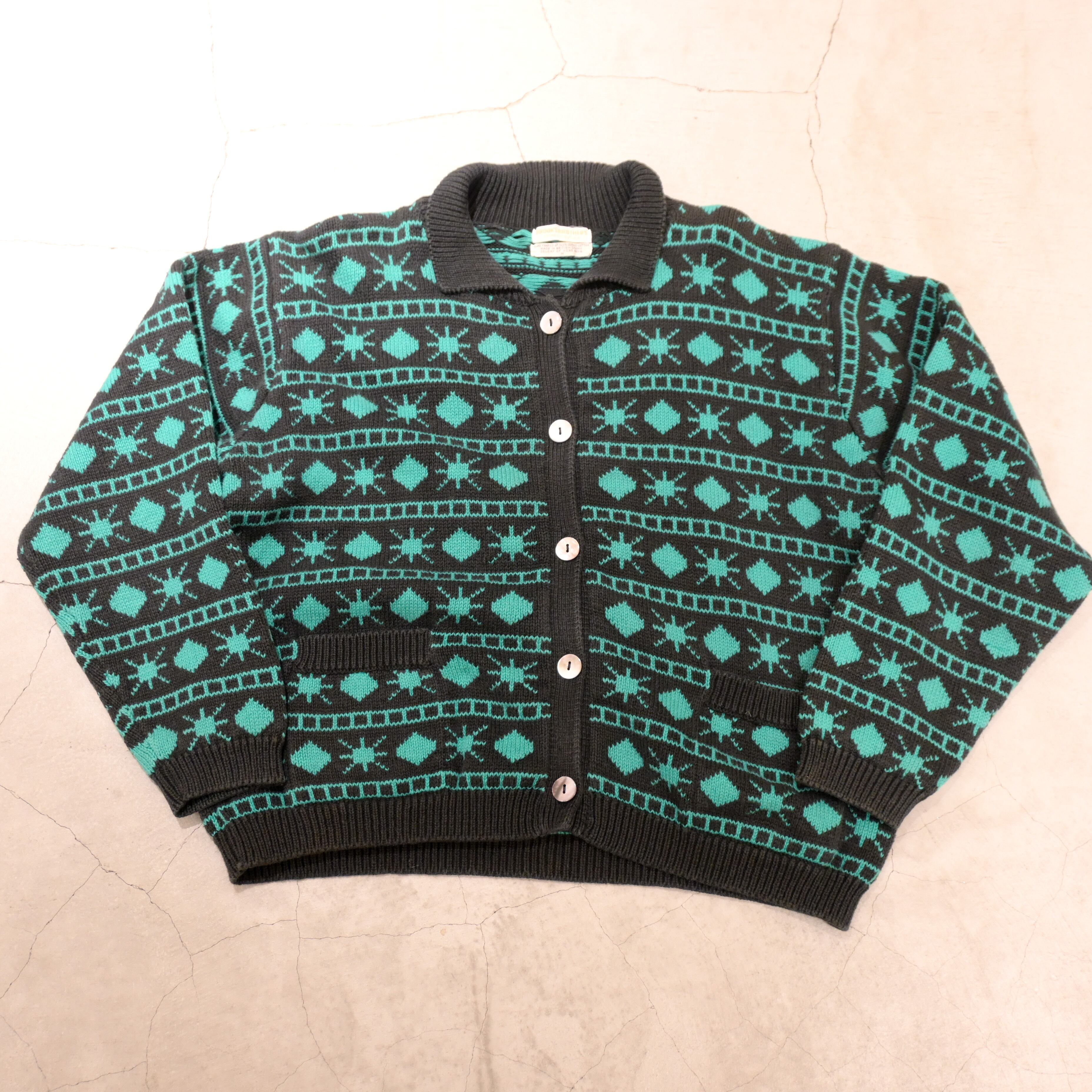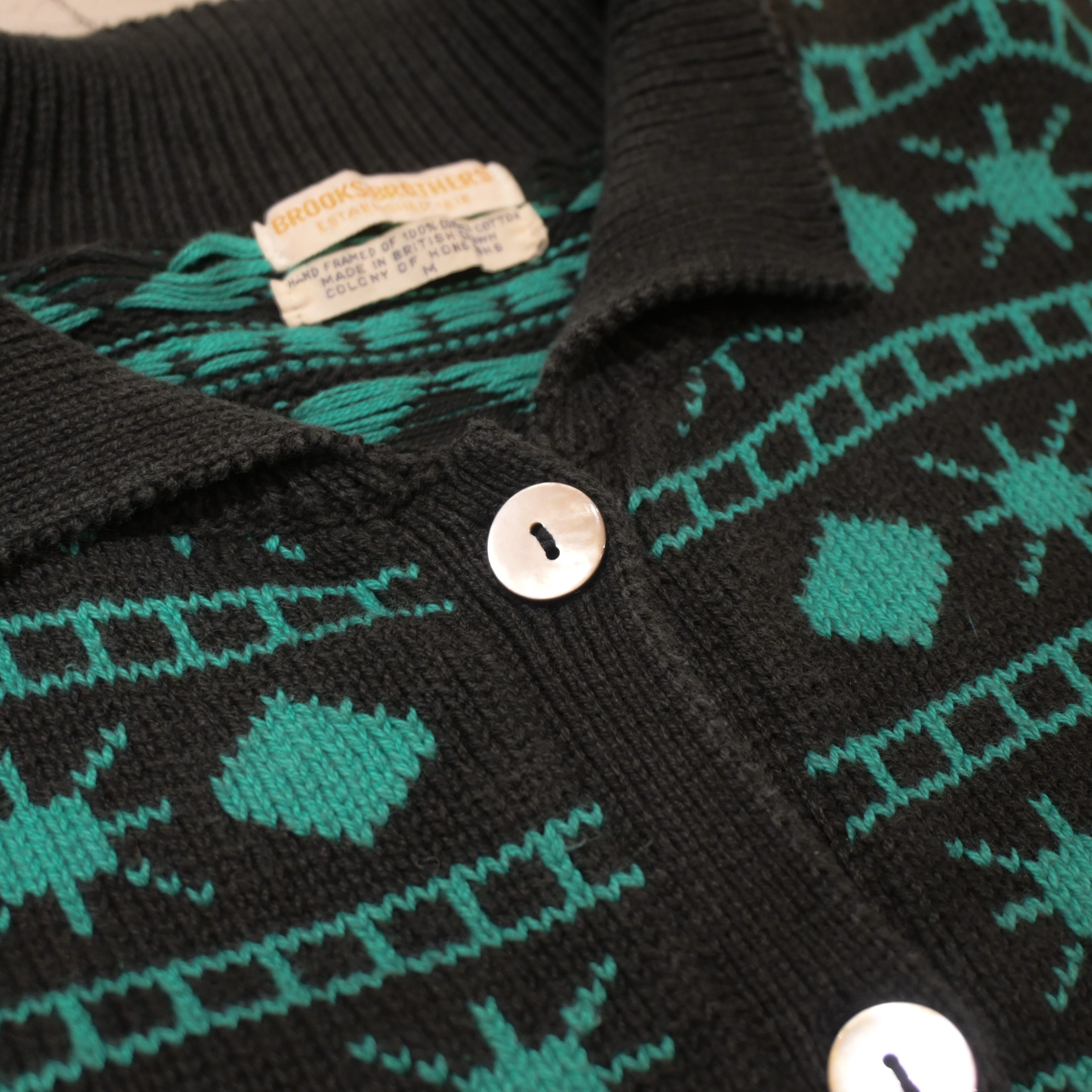 70-80's Brooks Brothers cozy geometric cotton knit cardigan