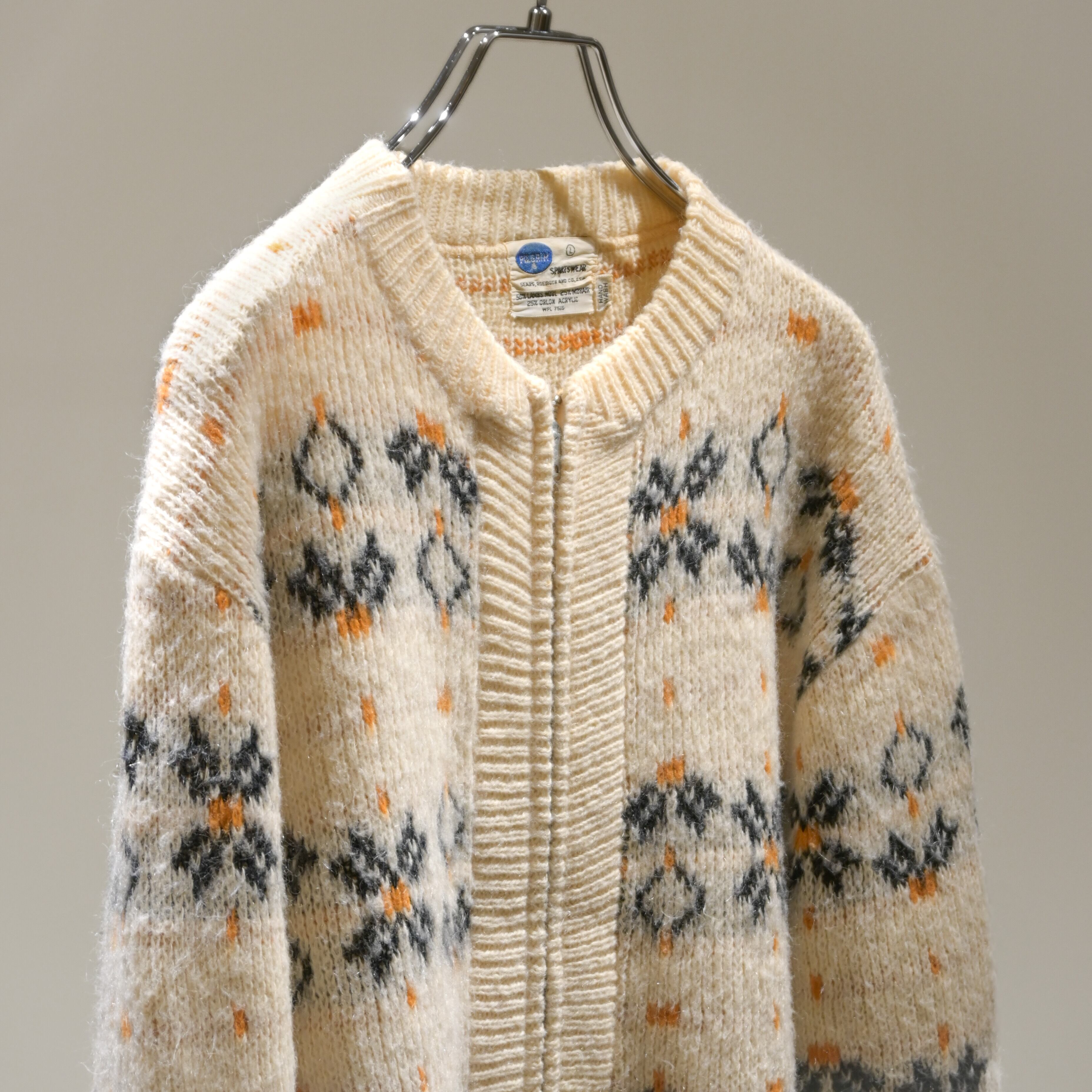 60's Pilgrim wool x mohair x acrylic zip up cardigan