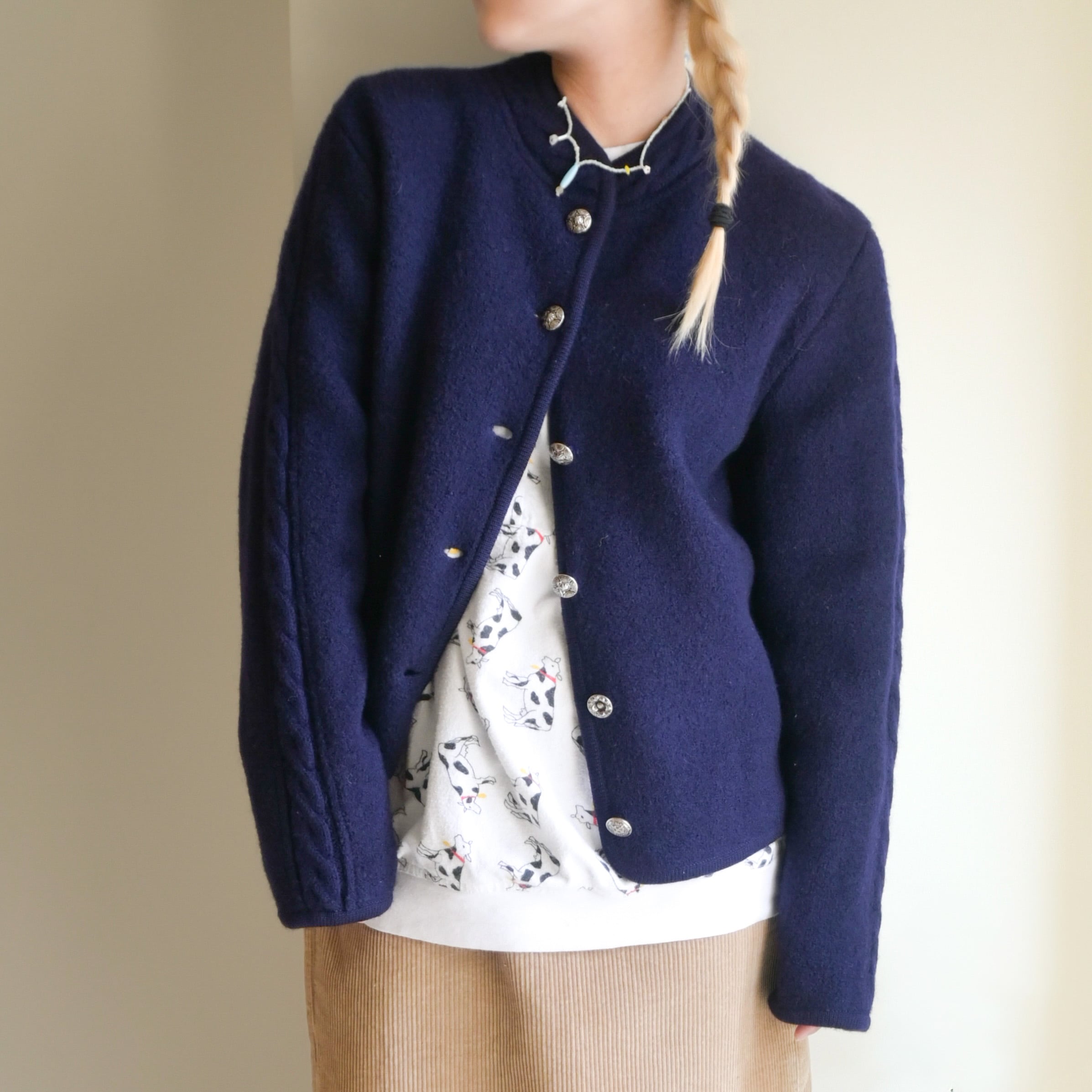 80's boiled wool mao collar jacket