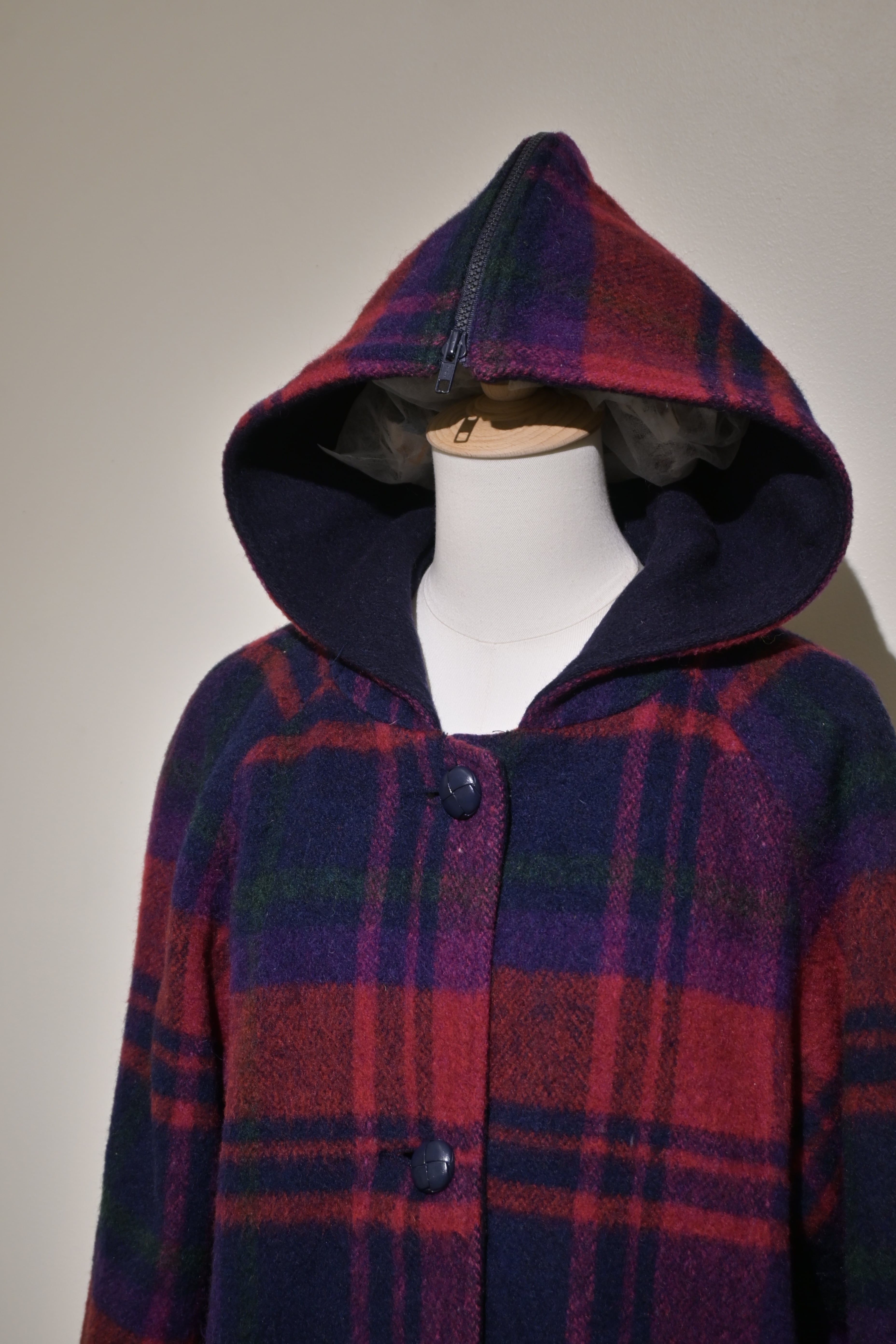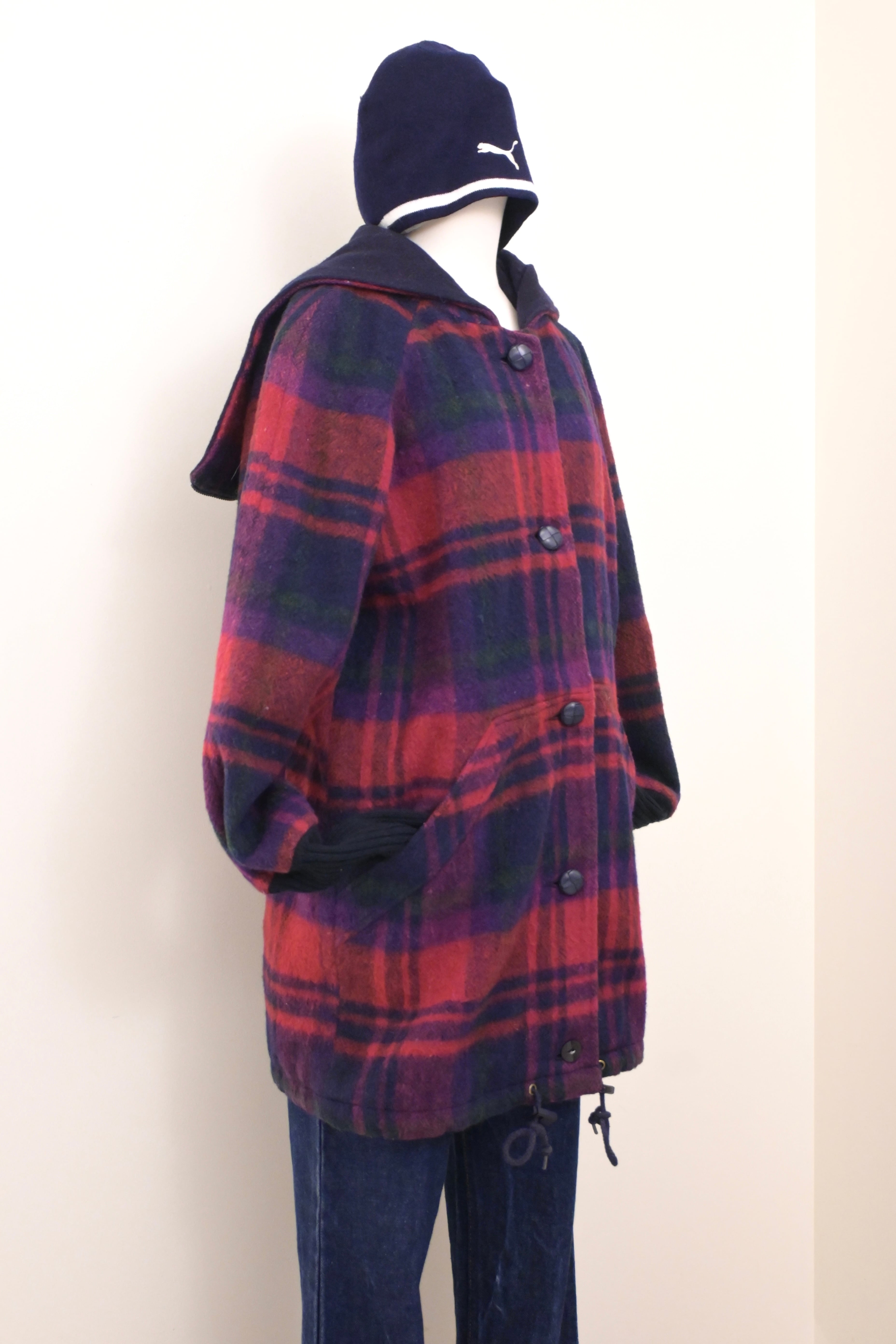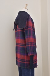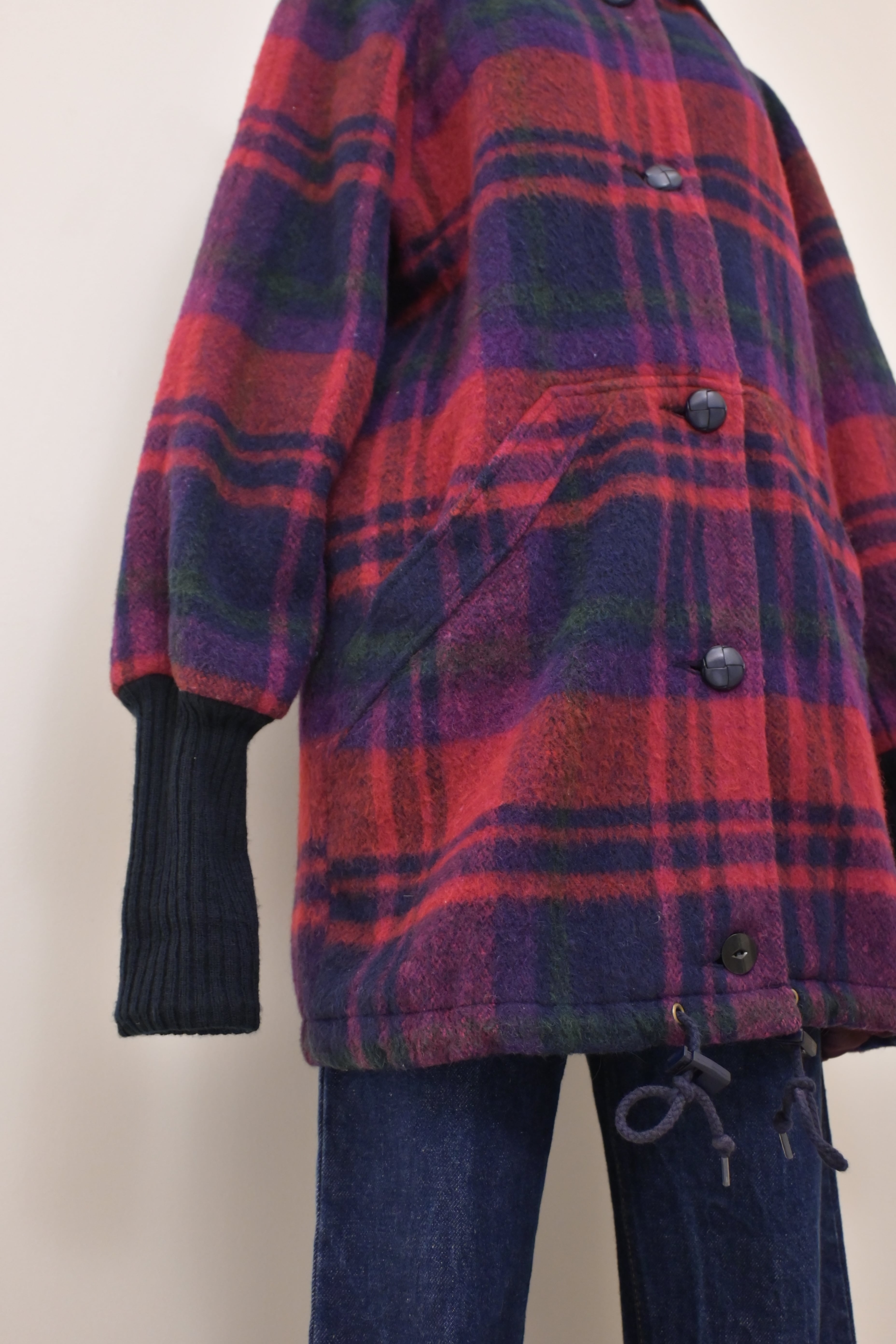 80's sailor collar plaid wool long rib jacket
