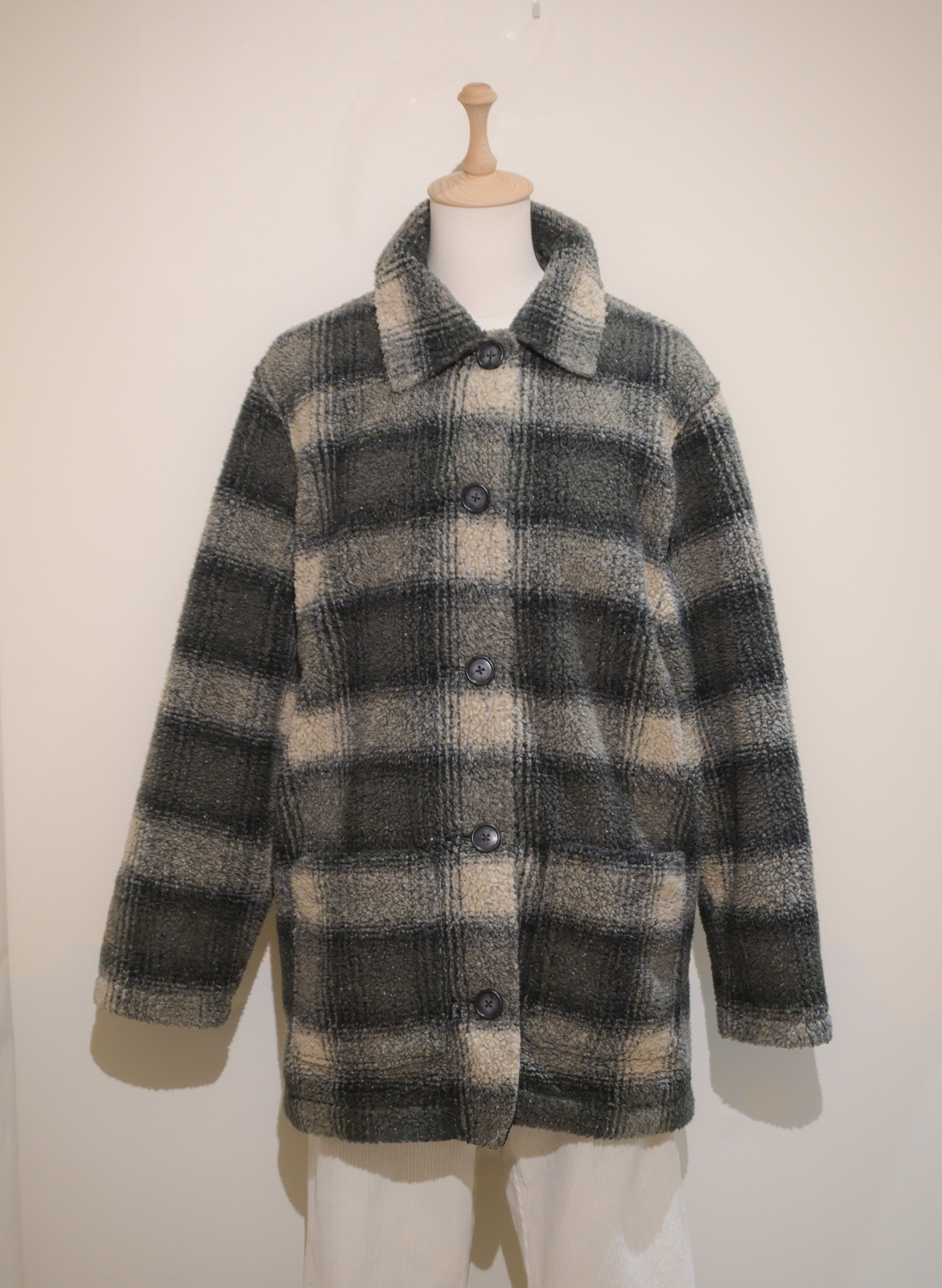 Eddie Bauer nylon lining plaid boa fleece jacket