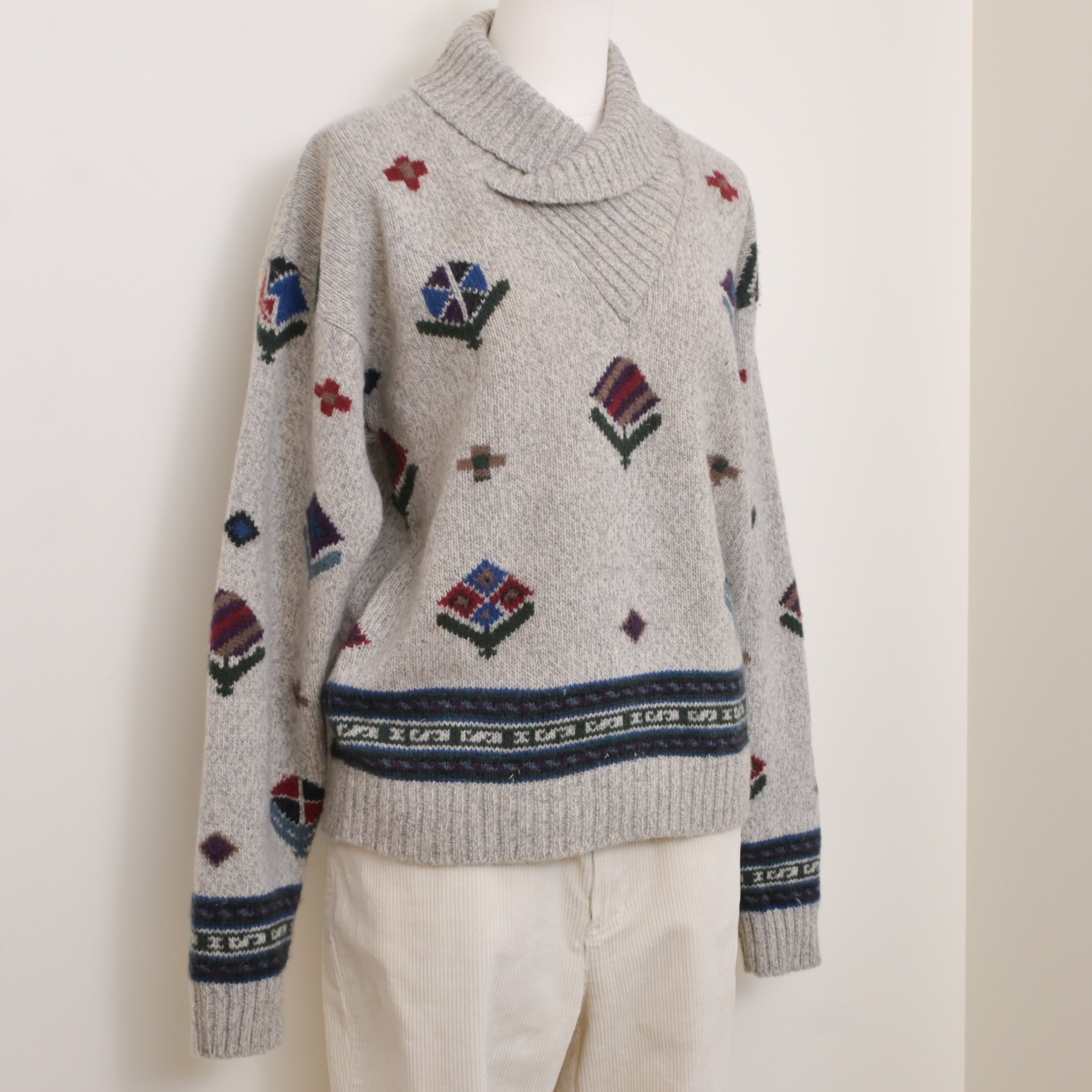 80's woolrich dead stock flower designed sweater