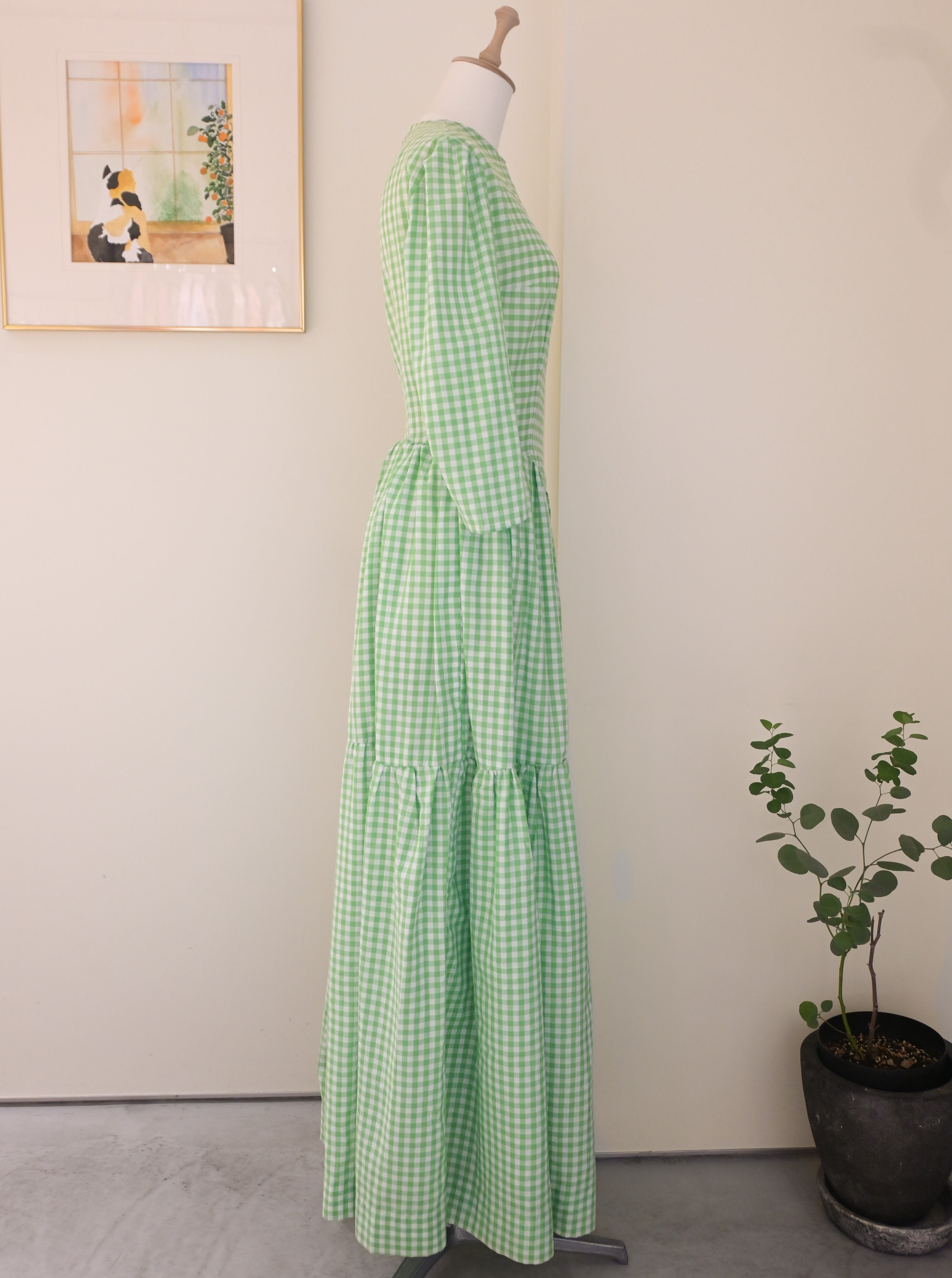 vintage handmade green gingham plaid dress