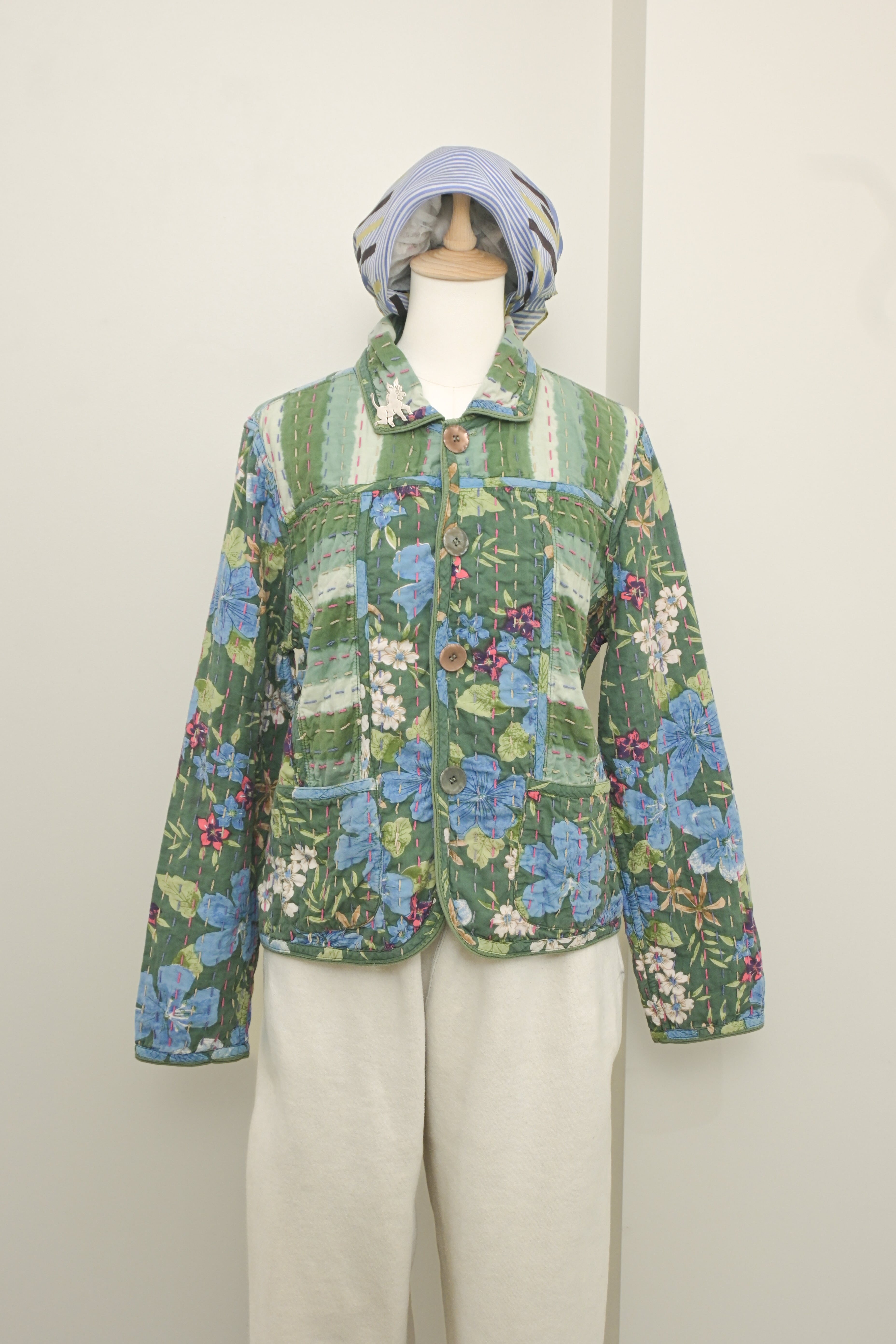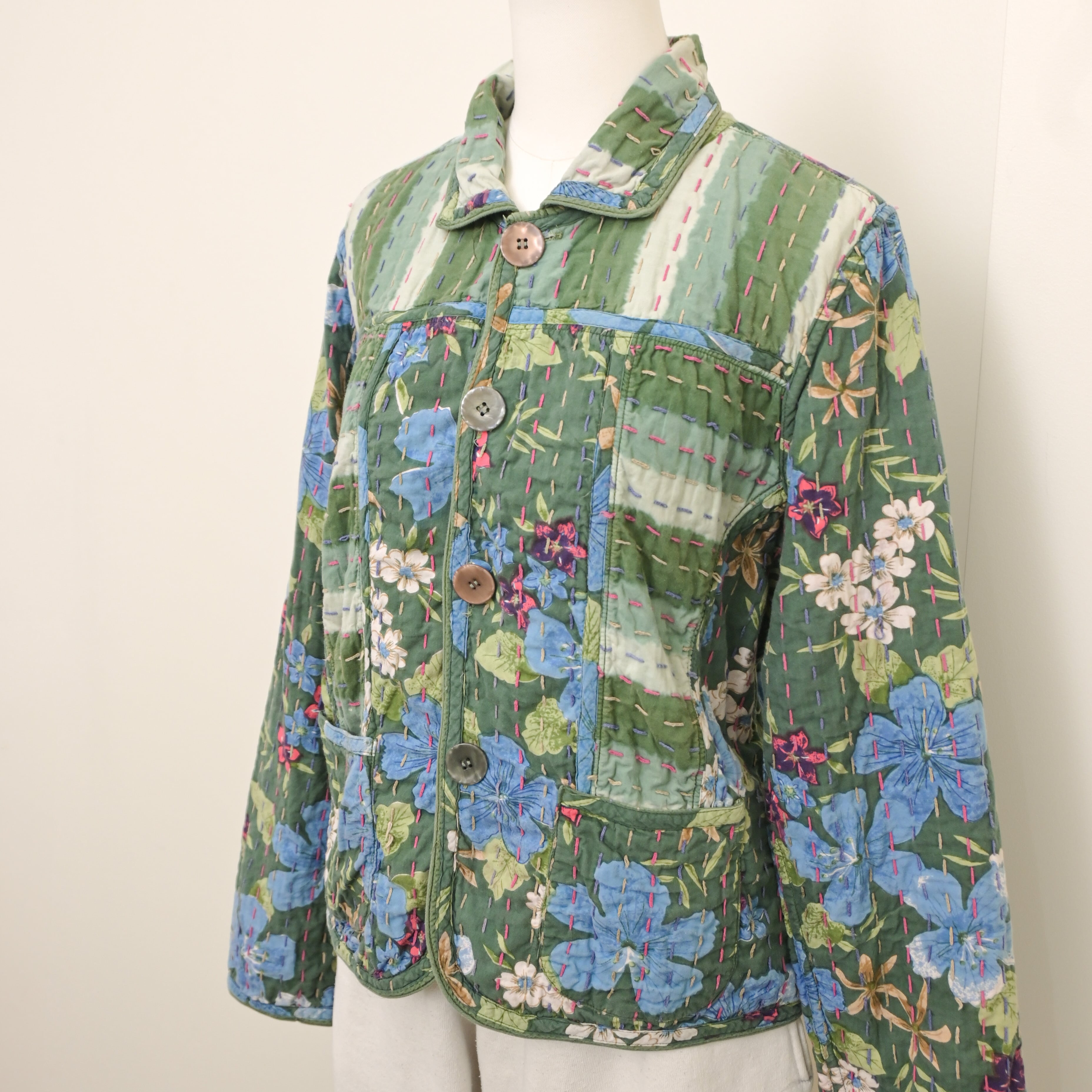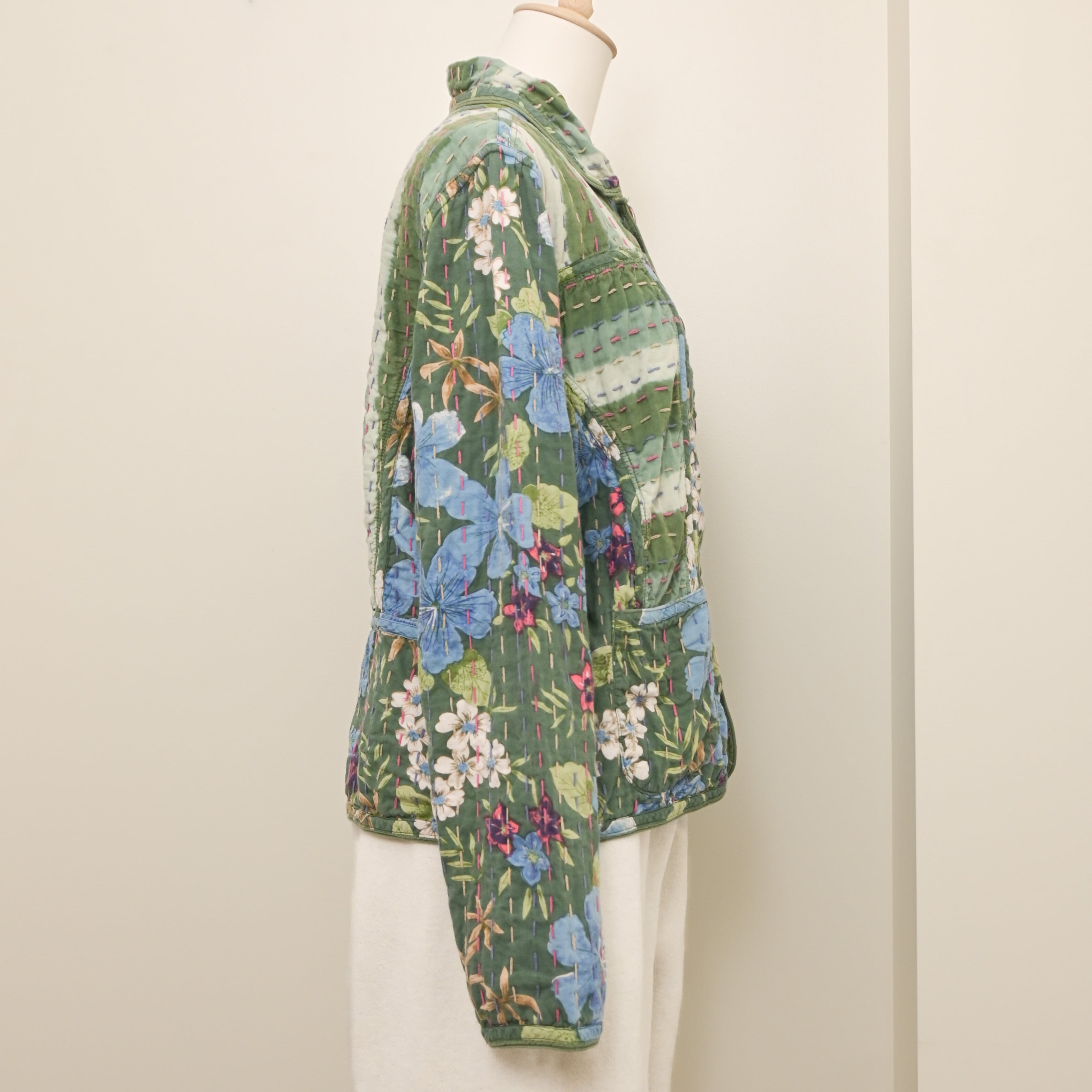 90's Reversible sashiko-stitched Indian cotton floral jacket