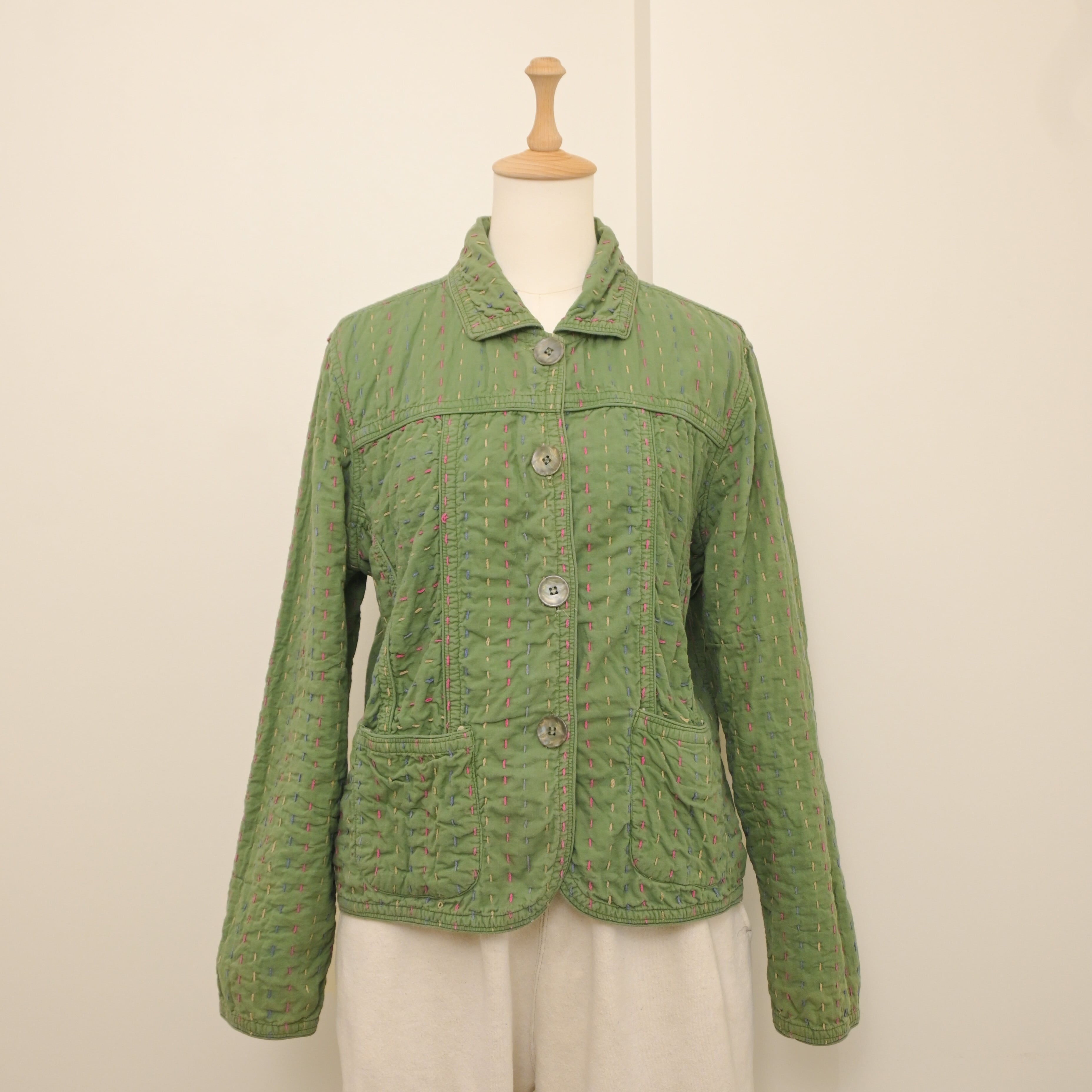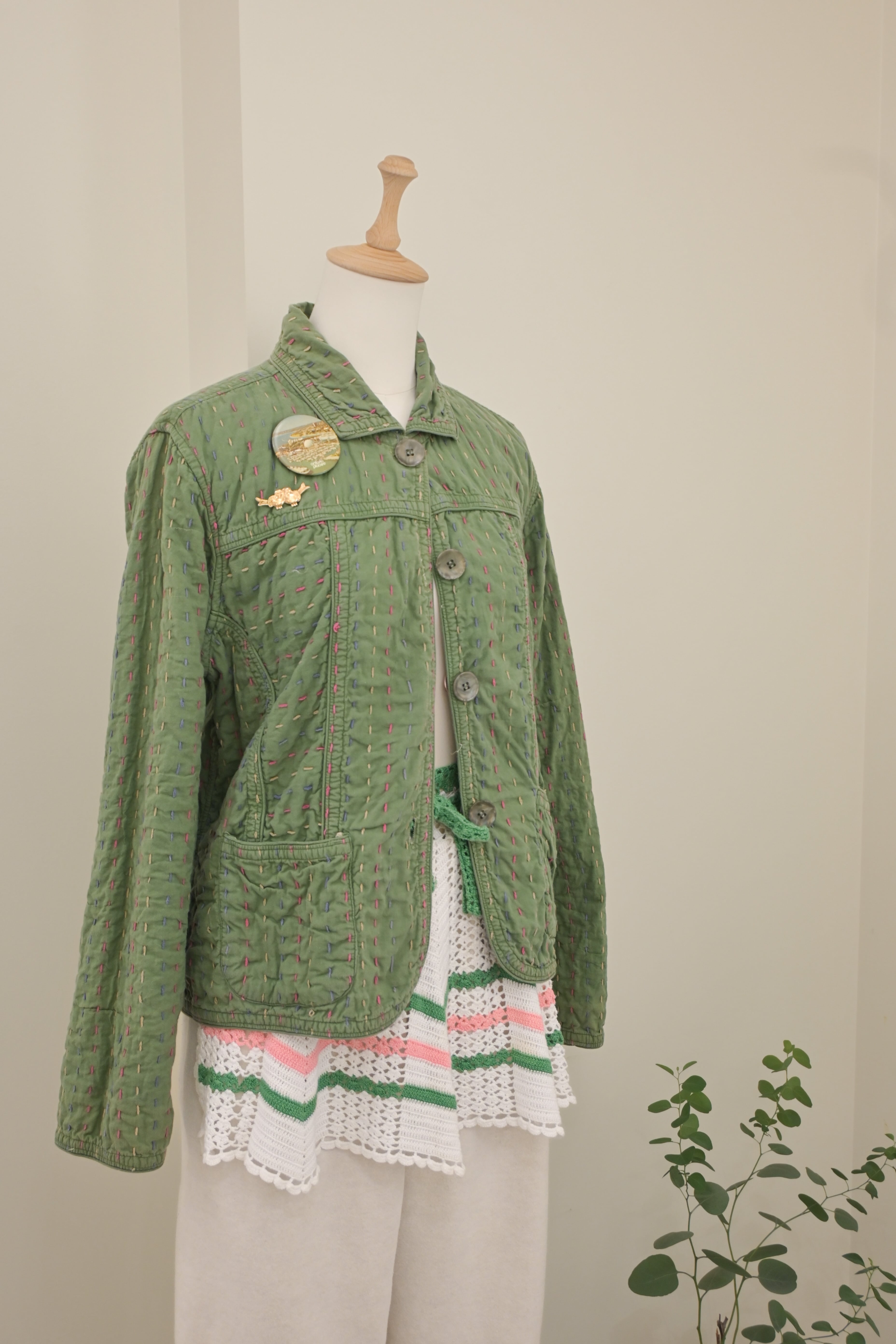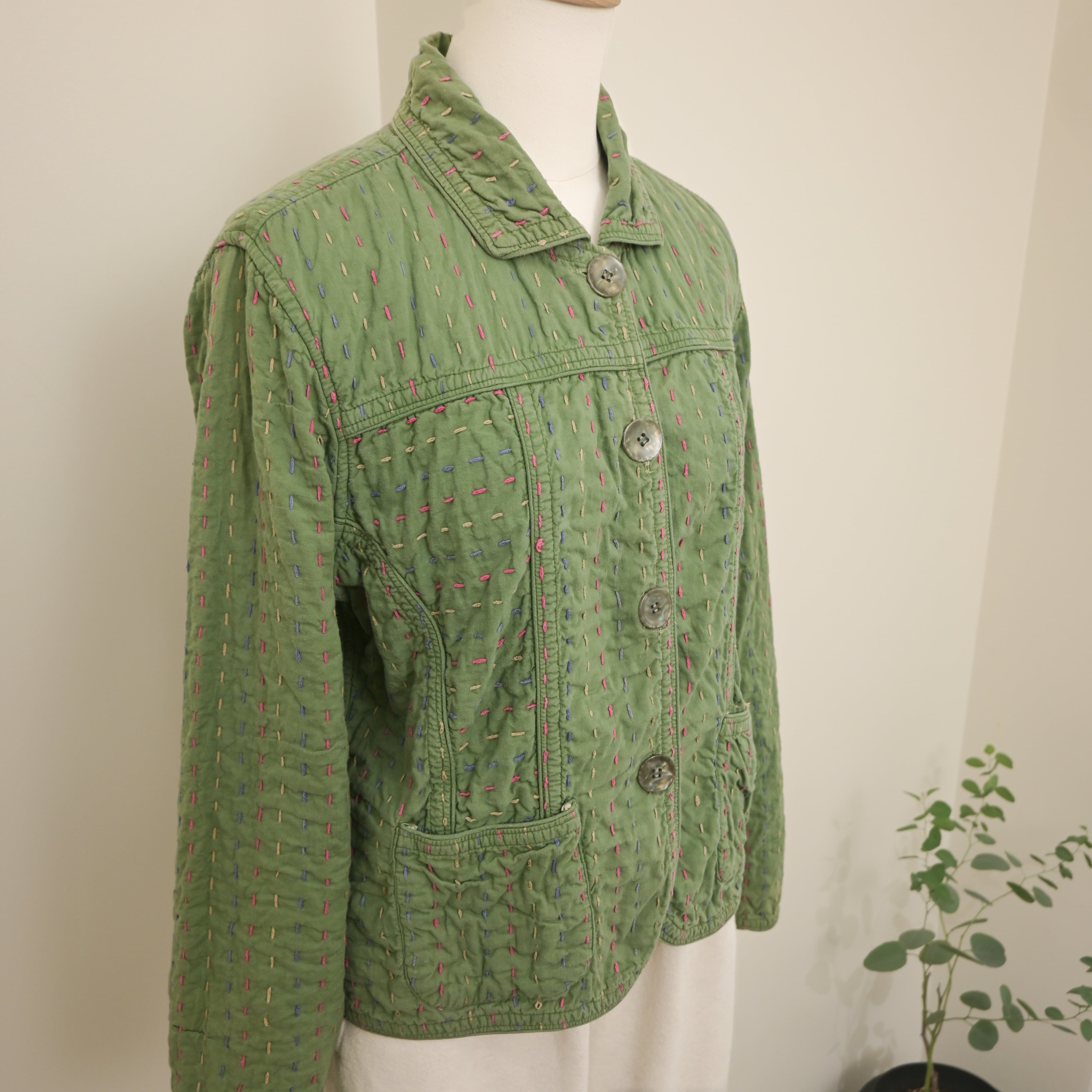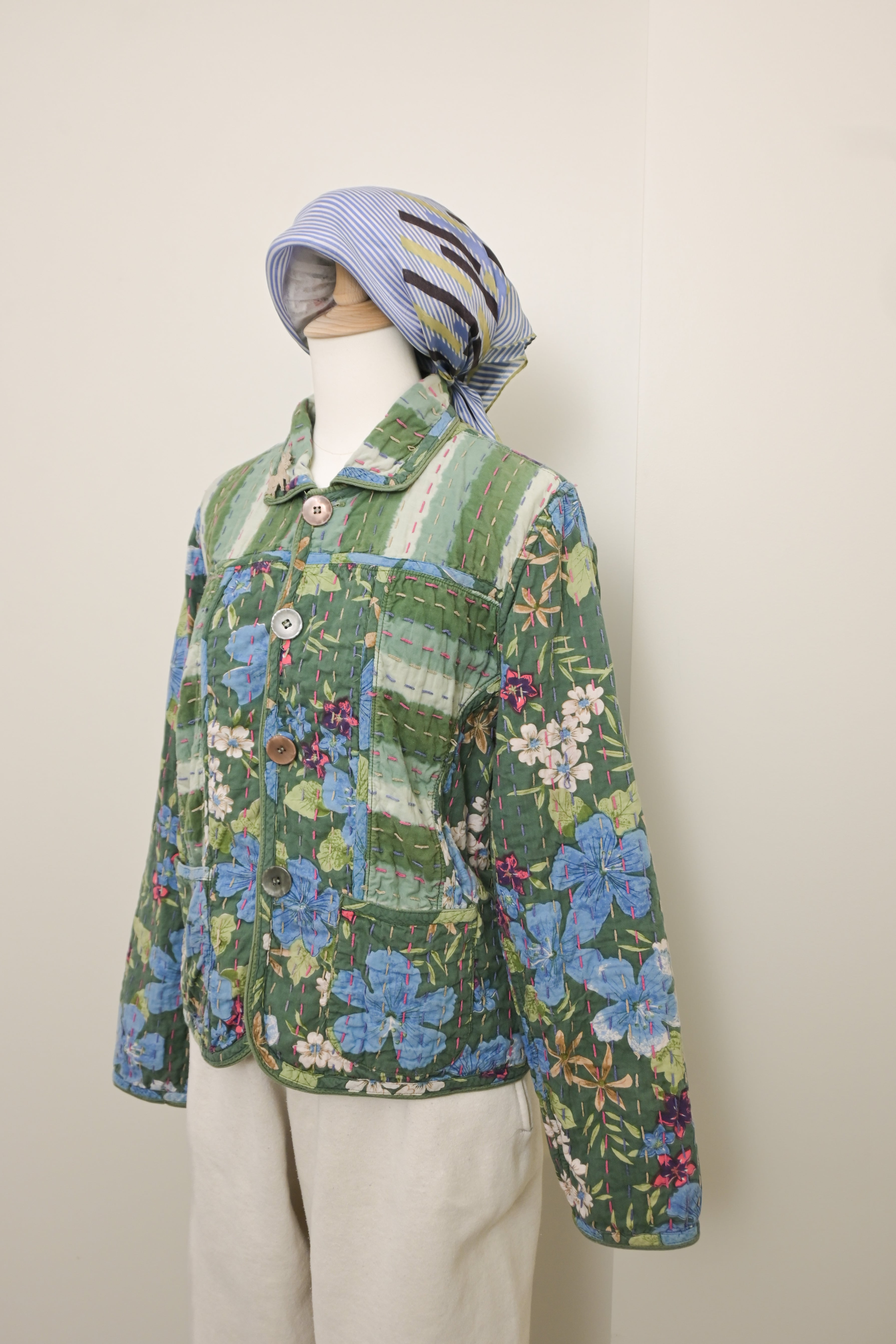 90's Reversible sashiko-stitched Indian cotton floral jacket