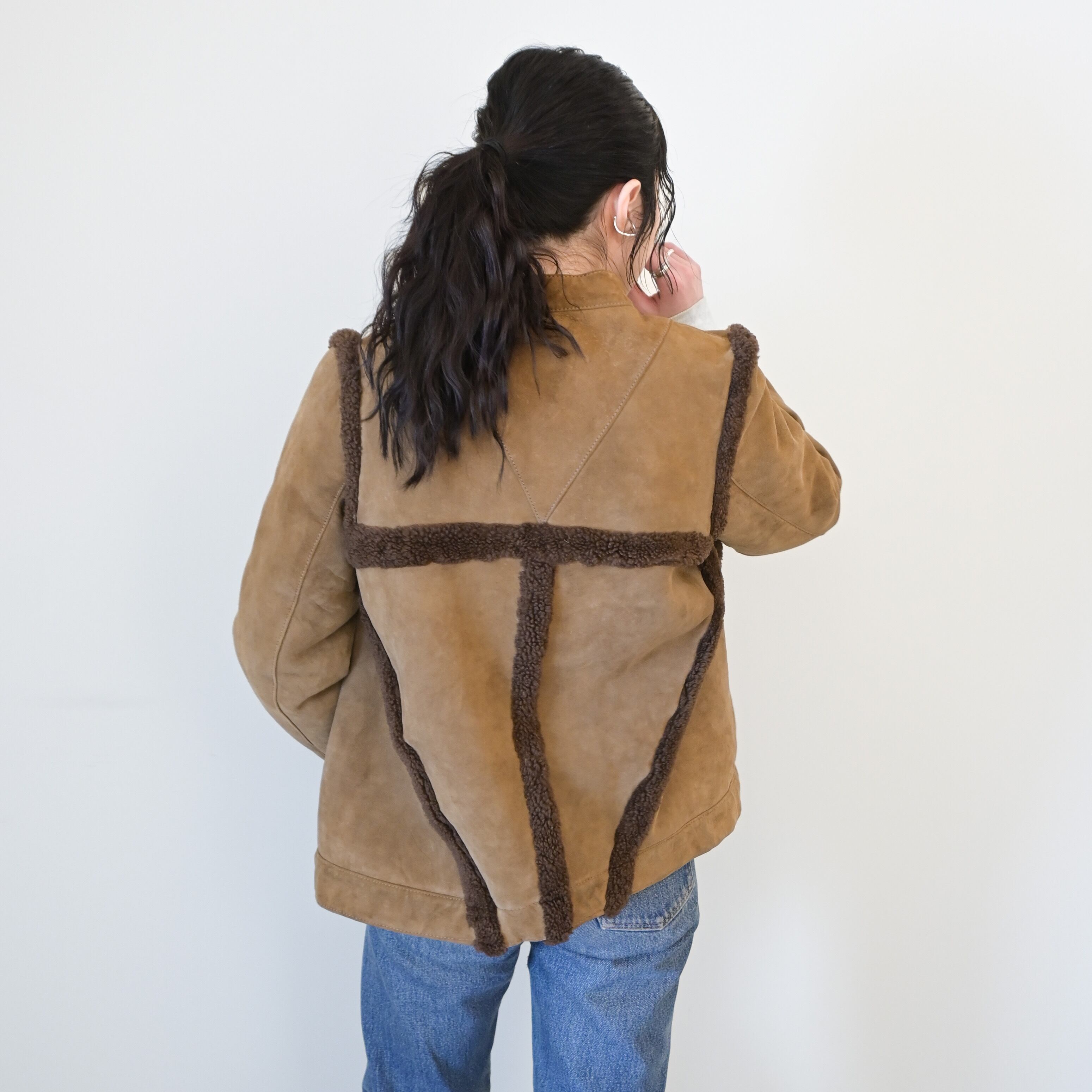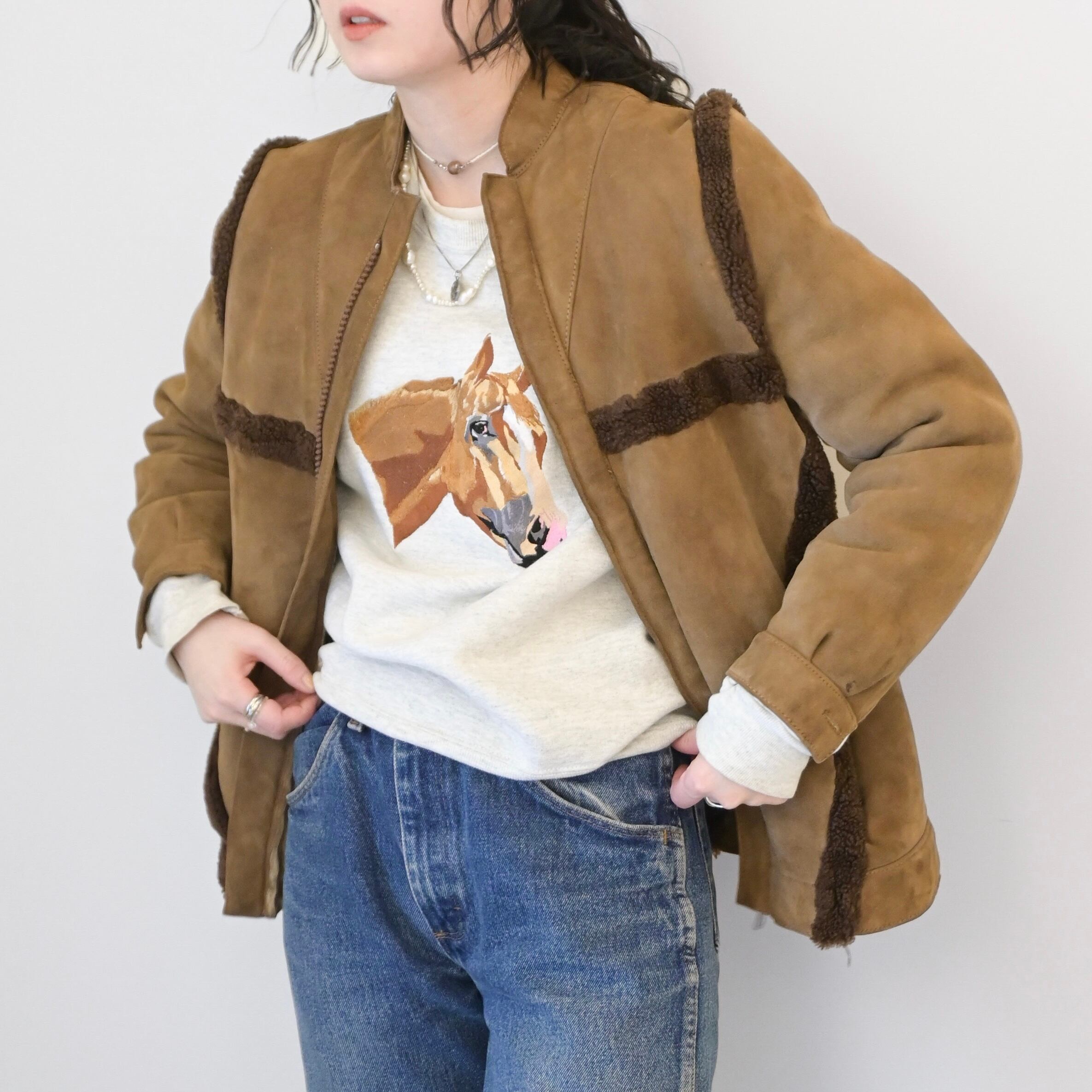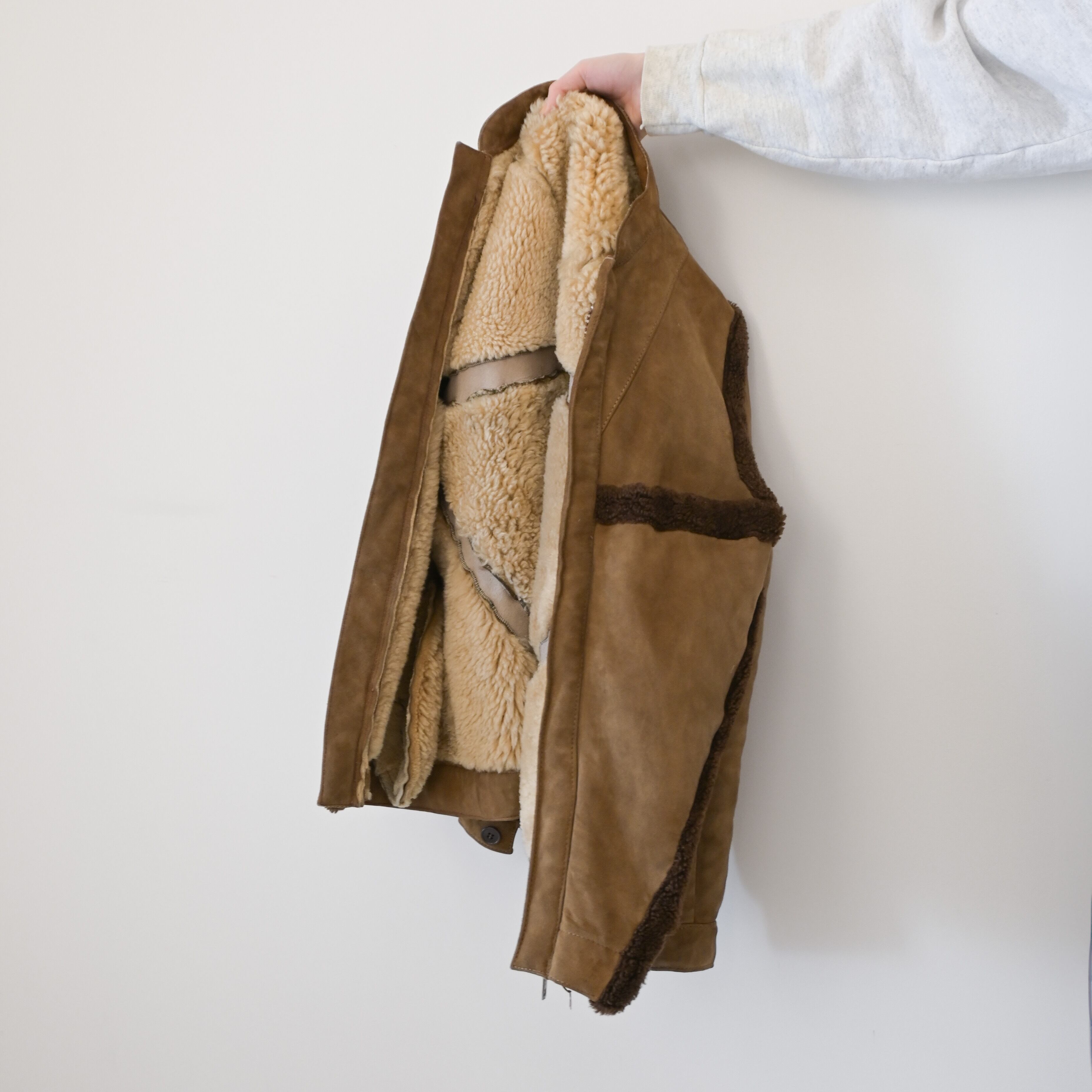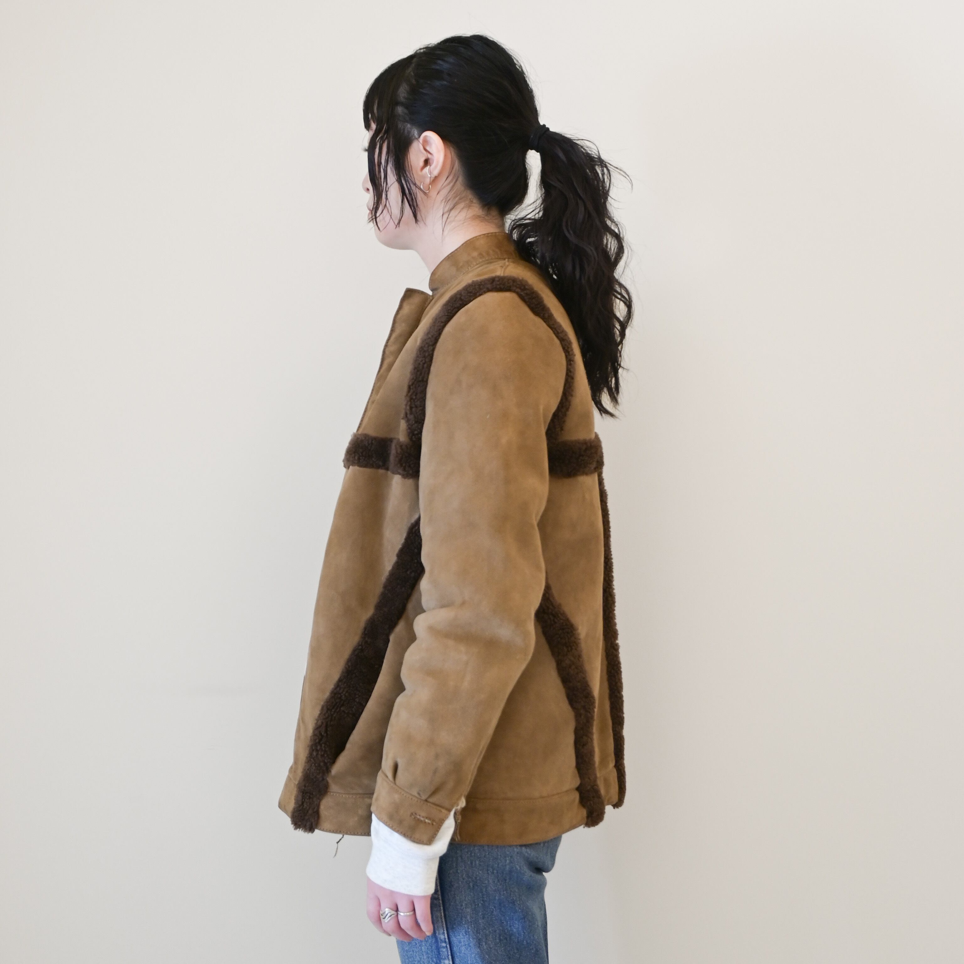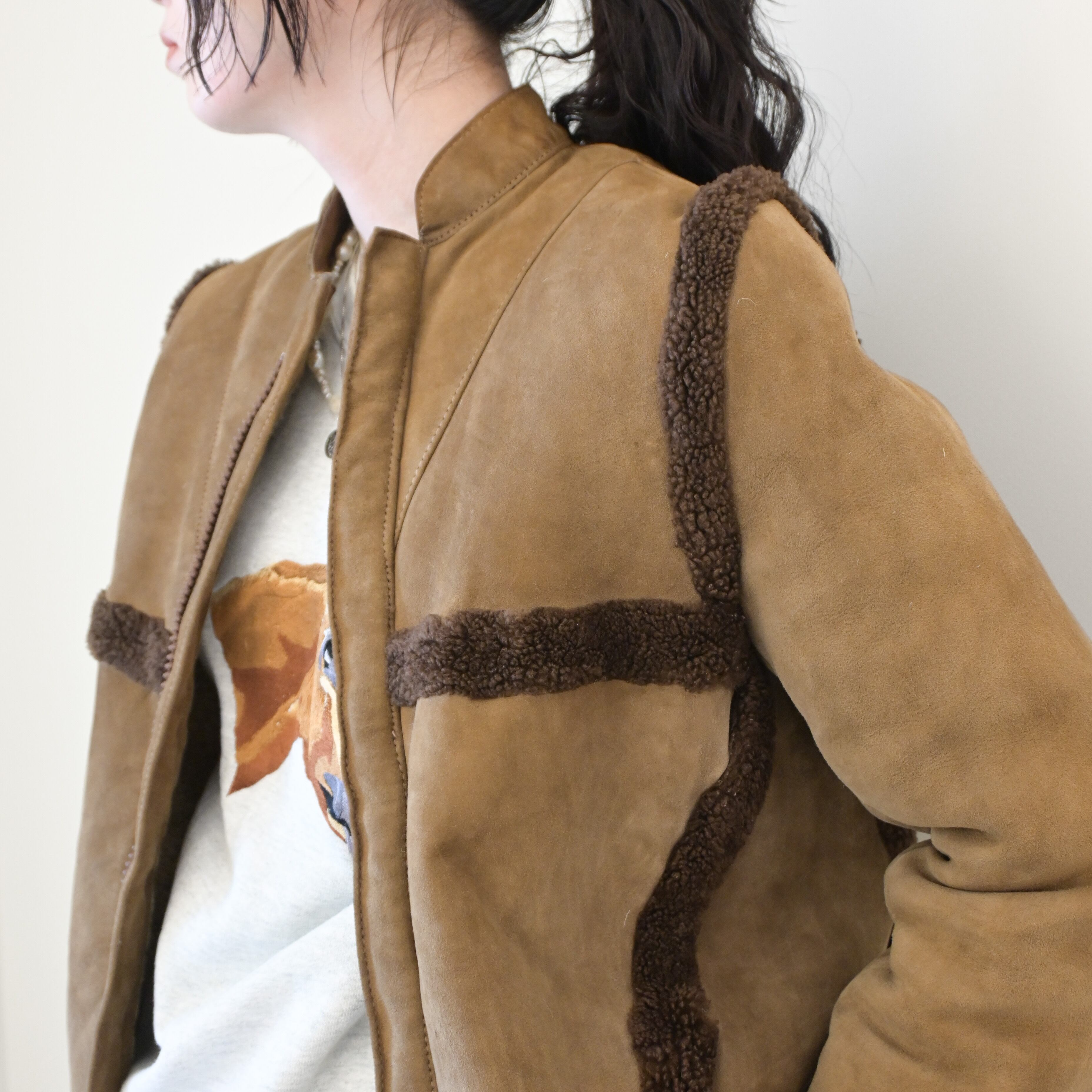 いわゆるスタンドカラーのムートンコートって、口元まで覆える大きな襟が多いですが、この子はさりげなく立ち上がってる珍しいタイプです。